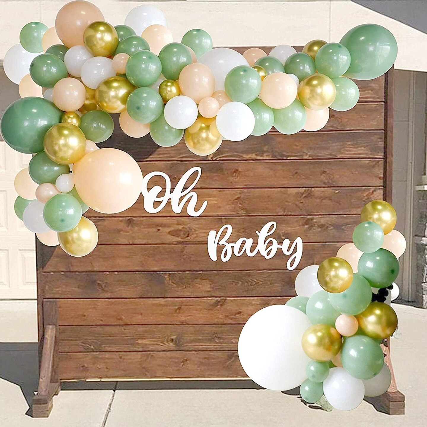 50 pcs Sage Green Blush Gold Confetti Latex Balloon(Sage Green White)11 x 7 x 1 inches