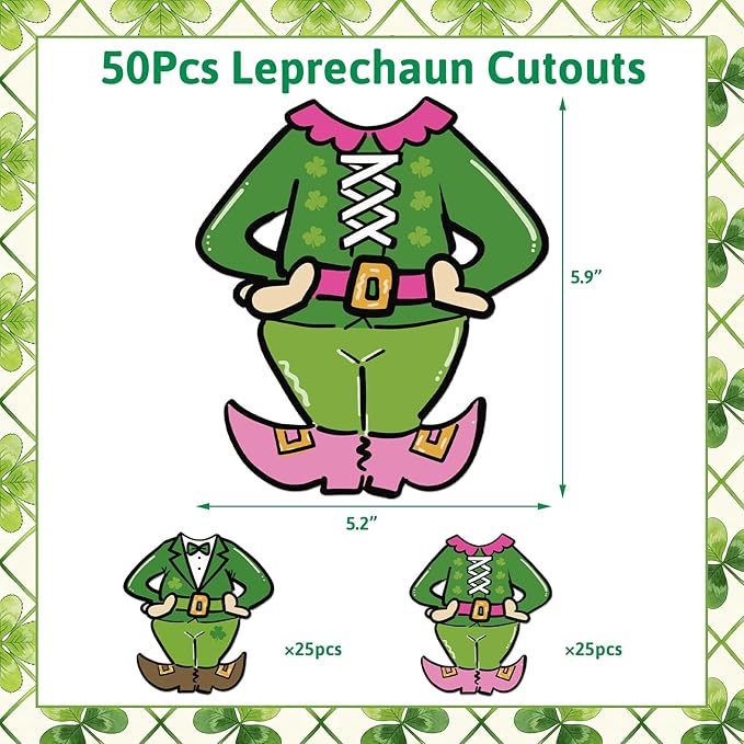 50 PCS St. Patrick's Day Cutouts for Photos DIY Leprechaun Bulletin Board Decorations March Shamrock Green Irish Classroom Party Wall Decor