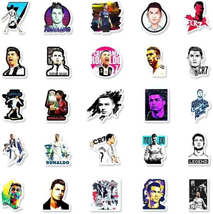 50 Pcs Vinyl Sticker of Ronaldo for Soccer Lovers Waterproof Stickers Bomb for Wall,(Neymar)