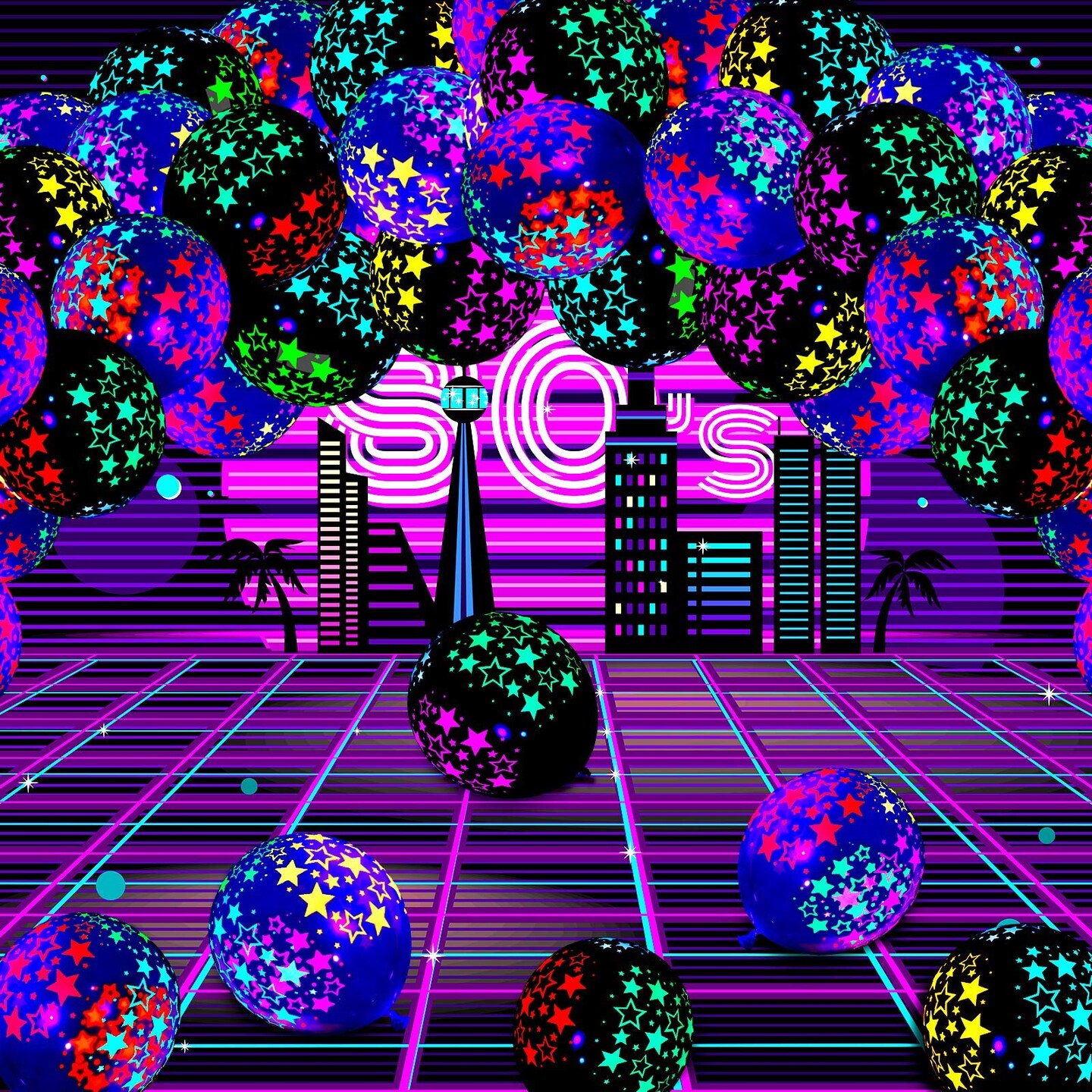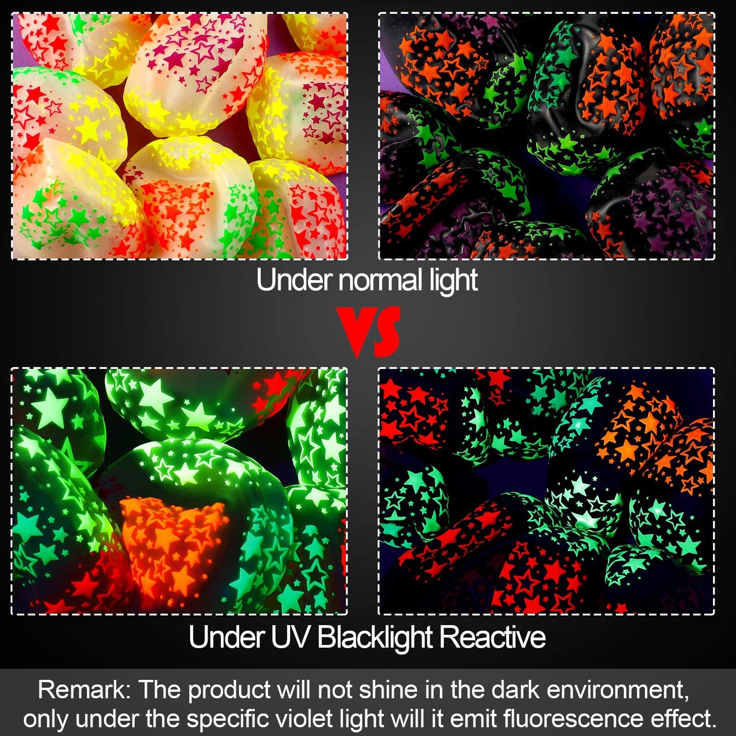 50 Pieces Neon Glow Balloons Neon Stars Glow in Blacklight Black Light Fluorescent Mini Stars Party Latex Balloons for Birthday Wedding Arch Party Decoration(Black, Clear)