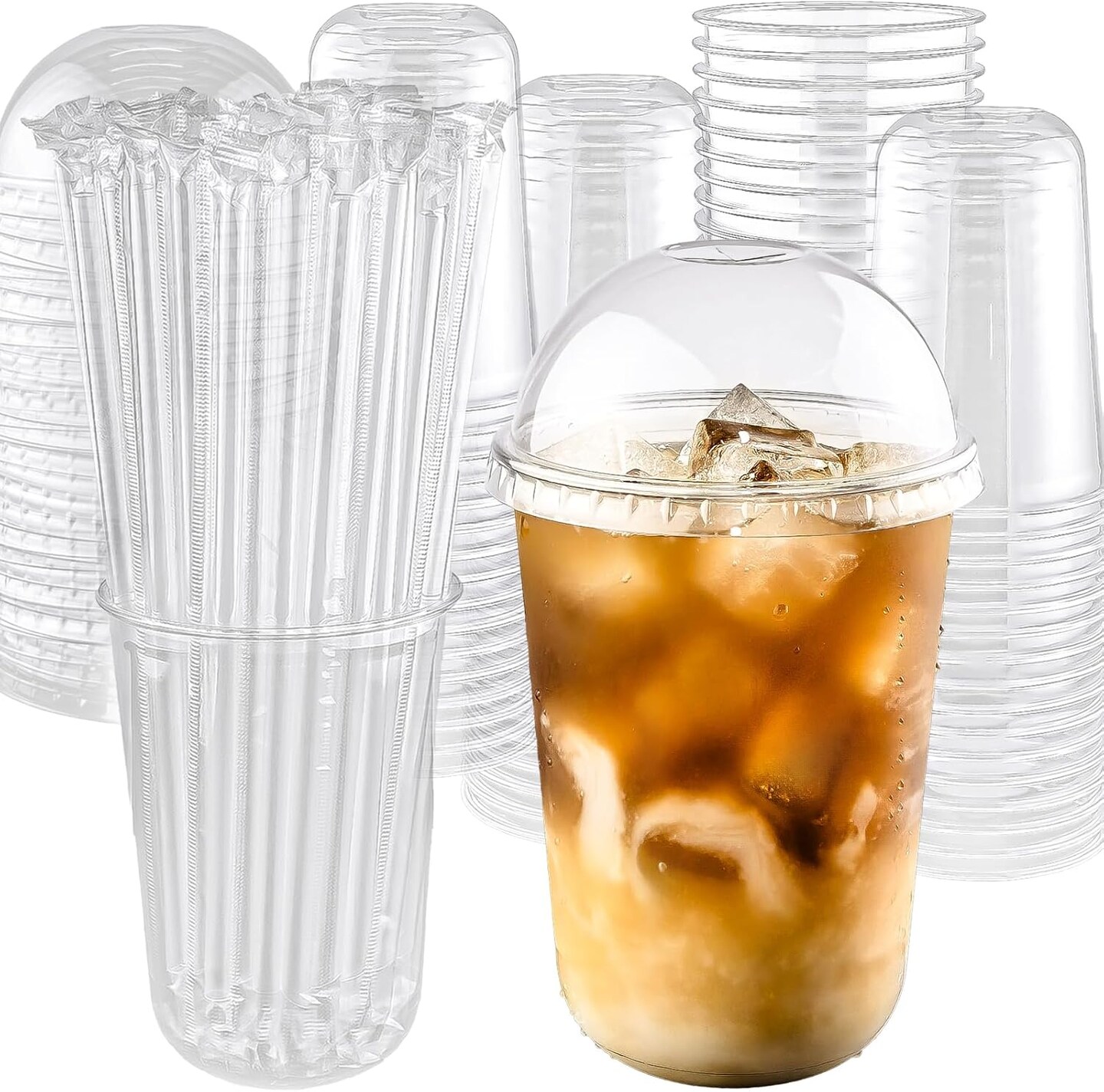 50 Set 16oz Disposable Clear Plastic Cup with Lids and Straws, Sturdy & Food Safe Iced Coffee Cups, Plastic Cold Drinks Cups for Smoothie, Milk Tea, Assorted Beverages Party Supplies