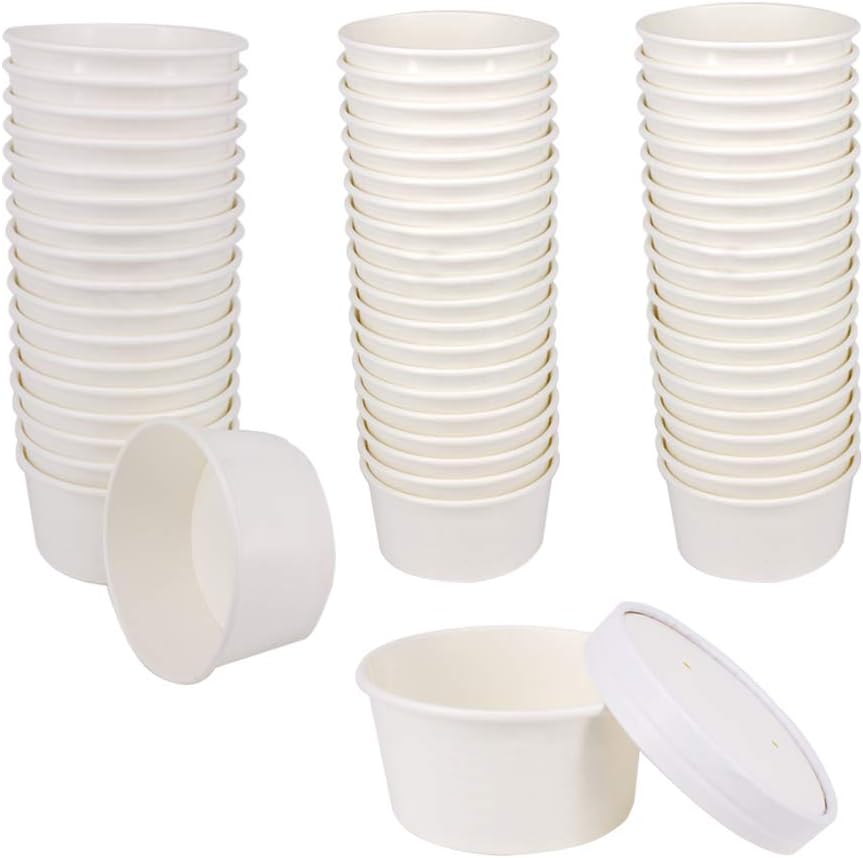 50 SET 6 OZ Disposable White Ice Cream Cups with Lids Medium Hot and Cold To Go Cups Paper Cup Takeout Food Container