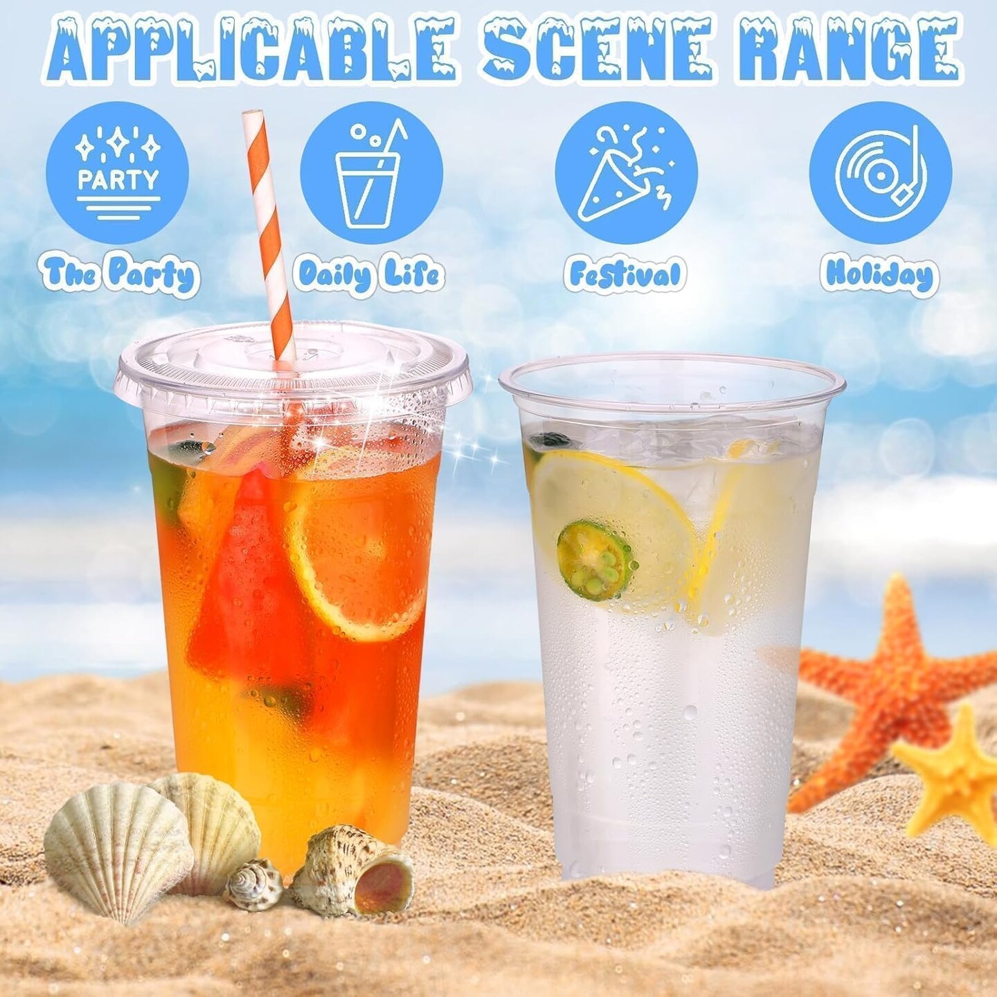 50 Set Clear Plastic Cups with Lids, Disposable Iced Coffee Cups, Disposable Cups with Lids for Party, Cold Drinks, Iced Coffee, Milkshakes, Smoothie Cups