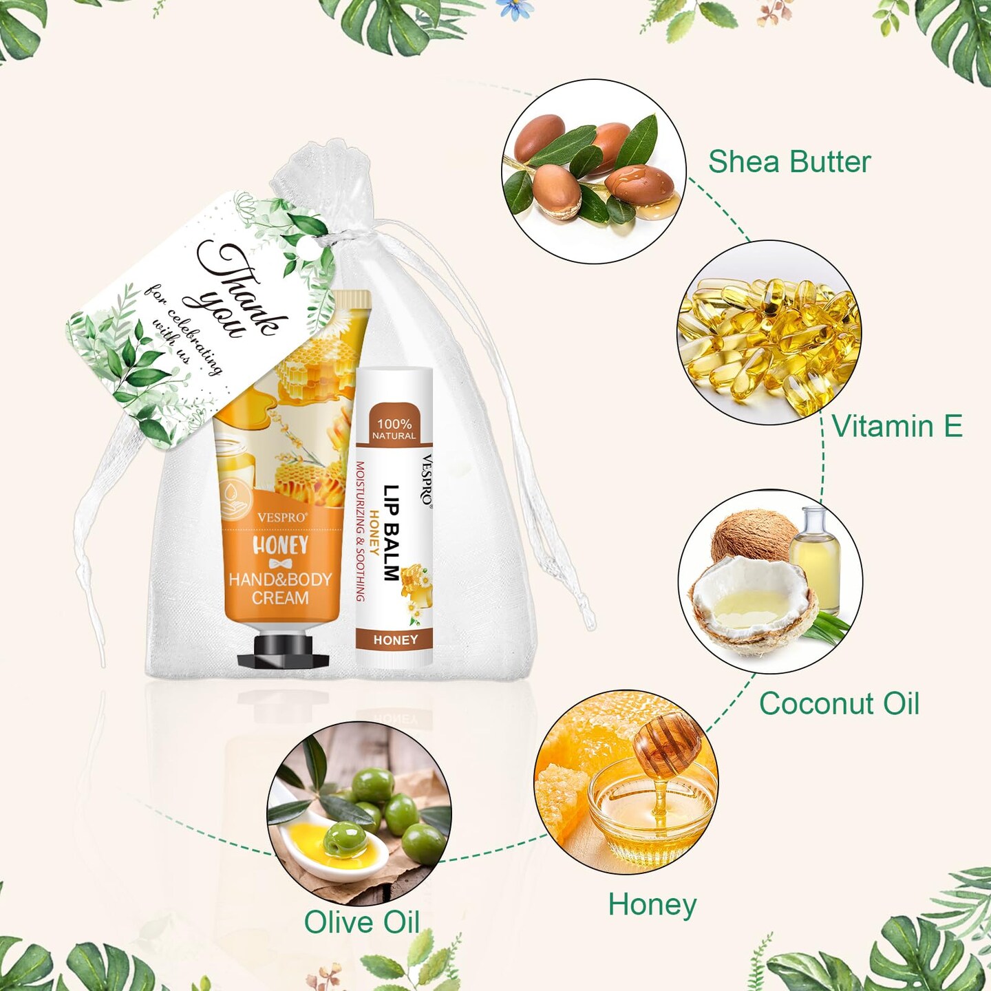 50 Sets Bulk Hand Cream and Bulk Lip Balm, Easter Basket Stuffers, Mothers Day Gifts, Bridal Shower Favors for Guests with Thank Card Organza Bags, Wedding Favors, Teacher and Nurse Gifts