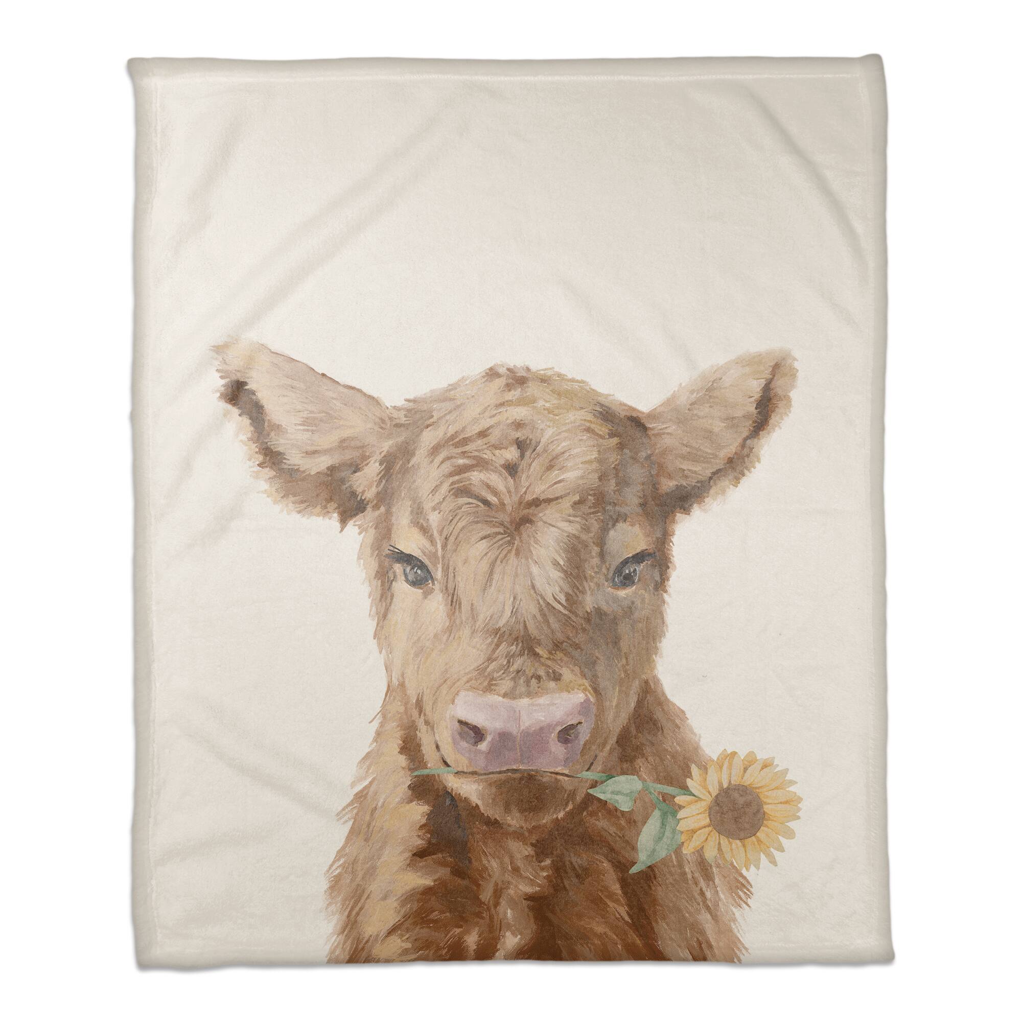 50" x 60" Baby Highland Cow Sunflower Coral Fleece Blanket