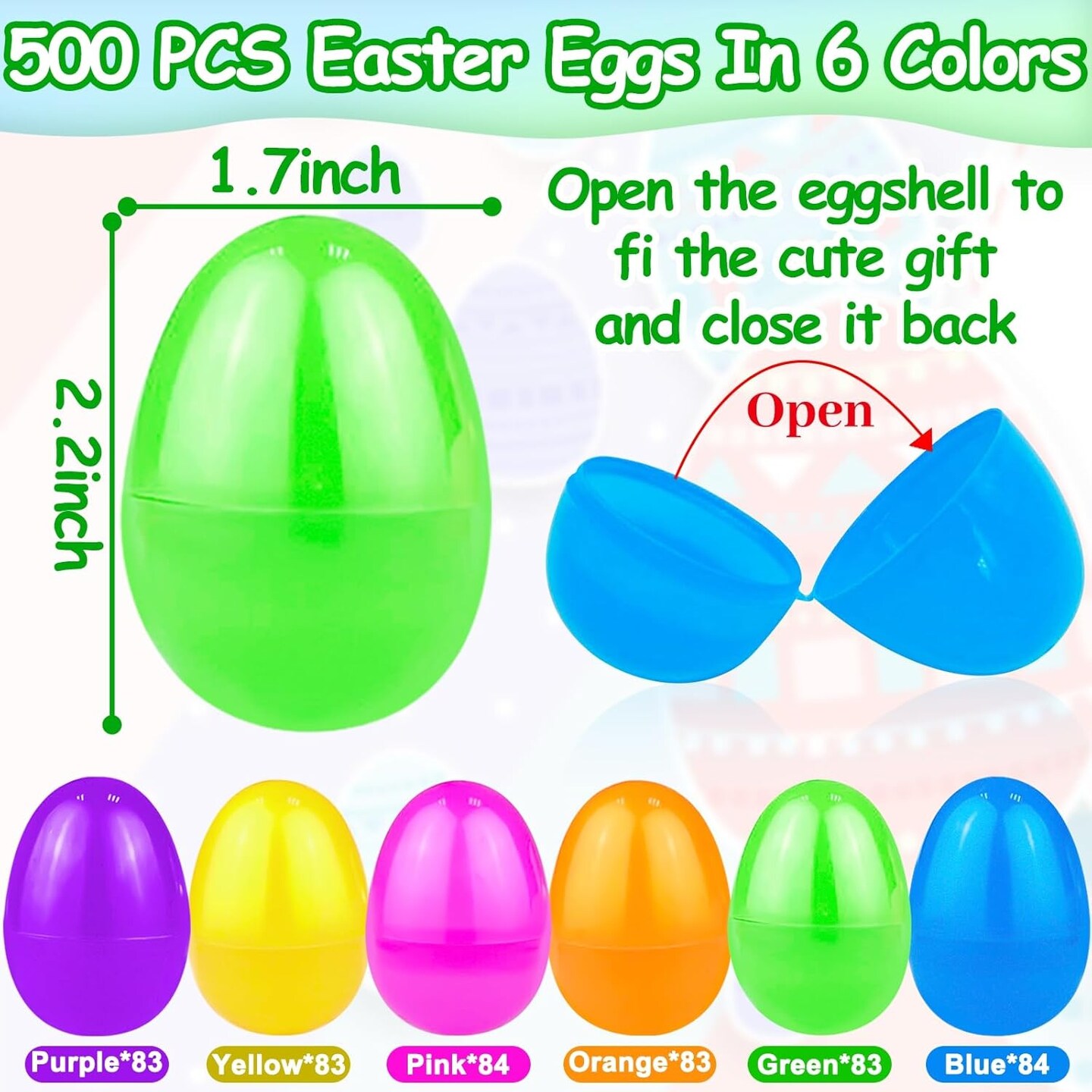 500 Count Plastic Easter Eggs Bulk 6 Colors Easter Eggs Fillable, Easter Basket Stuffer Filler 2.2 Inch Surprise Empty Easter Eggs for Eggs Hunt