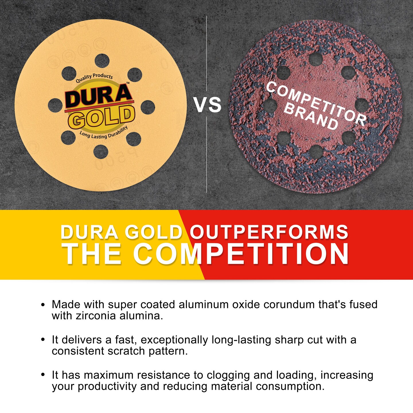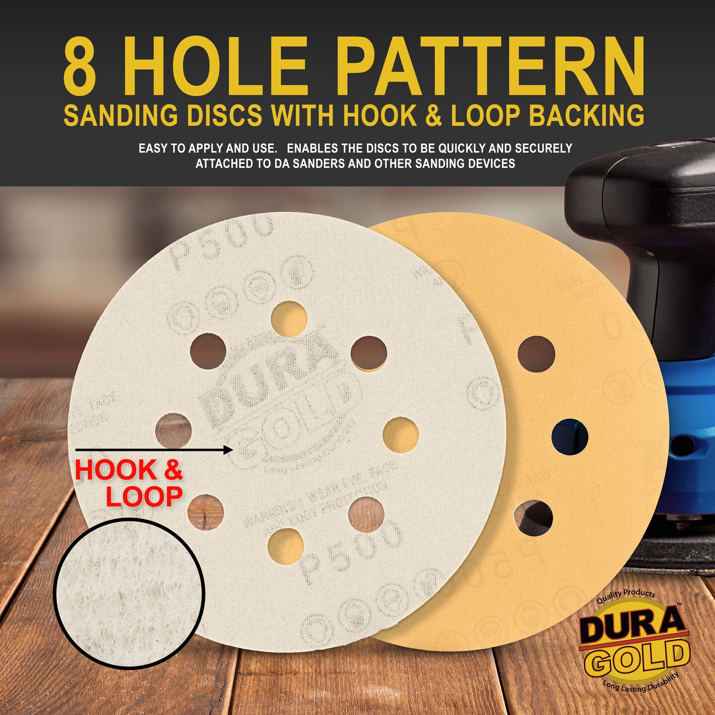 500 Grit - 5" Gold DA Sanding Discs - 8-Hole Pattern Hook and Loop - Box of 50