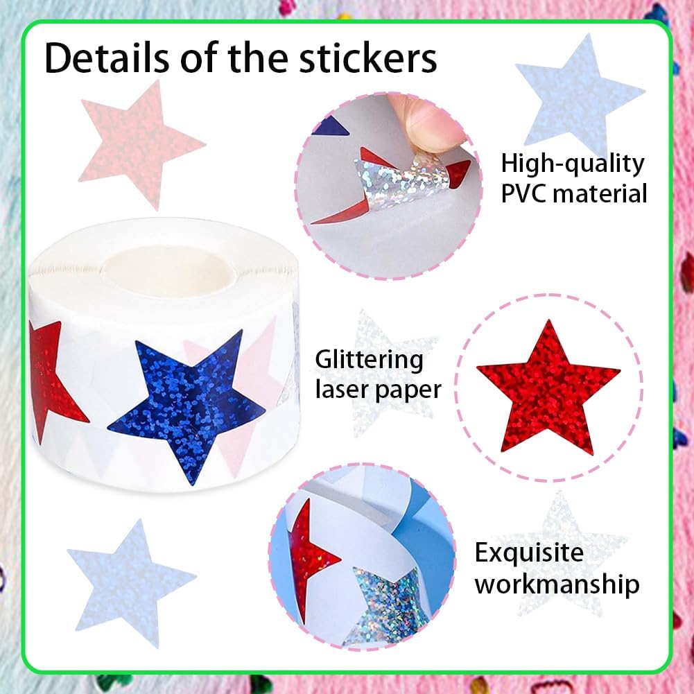 500 Pcs 4th of July Star Patriotic Stickers Red White and Blue-6