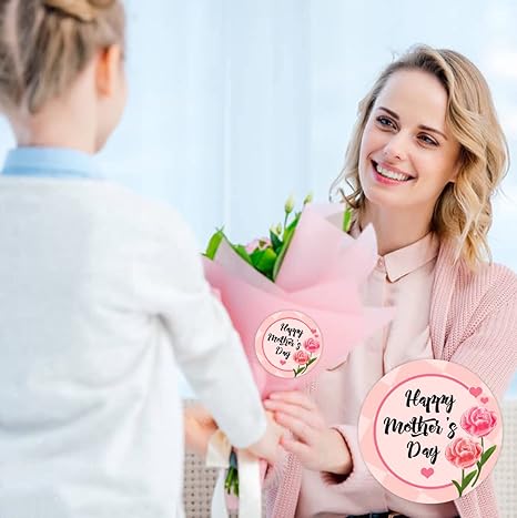 500 Pcs Happy Mother's Day Heart Stickers - 2 Inch Large Floral Gift Labels - Self-Adhesive Heart-Shaped Seals for Envelopes, Gift Wrap, and Party Favors