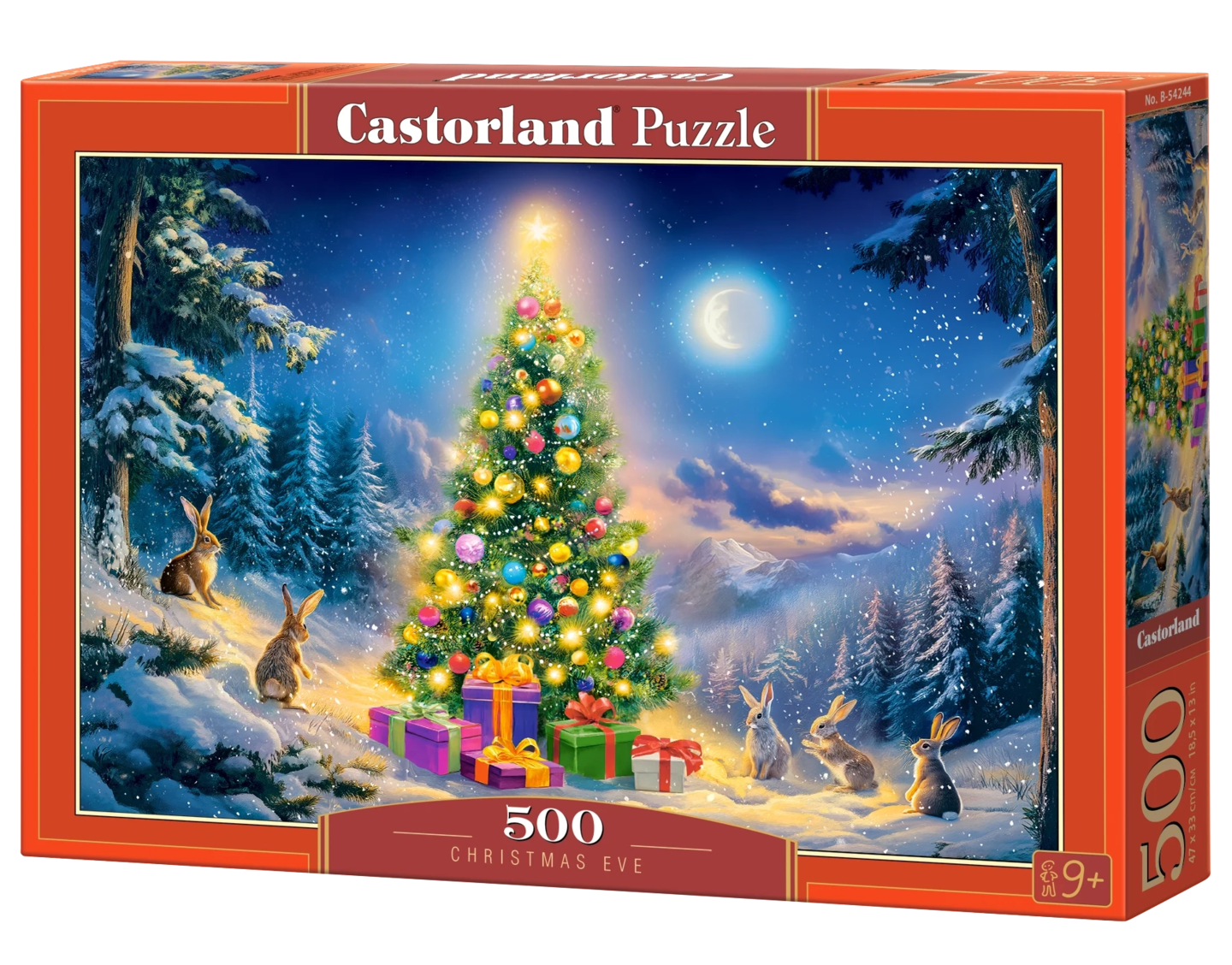 500 Piece Jigsaw Puzzle, Christmas Eve, Glowing Christmas Tree & Bunnies in Snow, Cozy Holiday Vibes, Adult Puzzle, Castorland B-54244