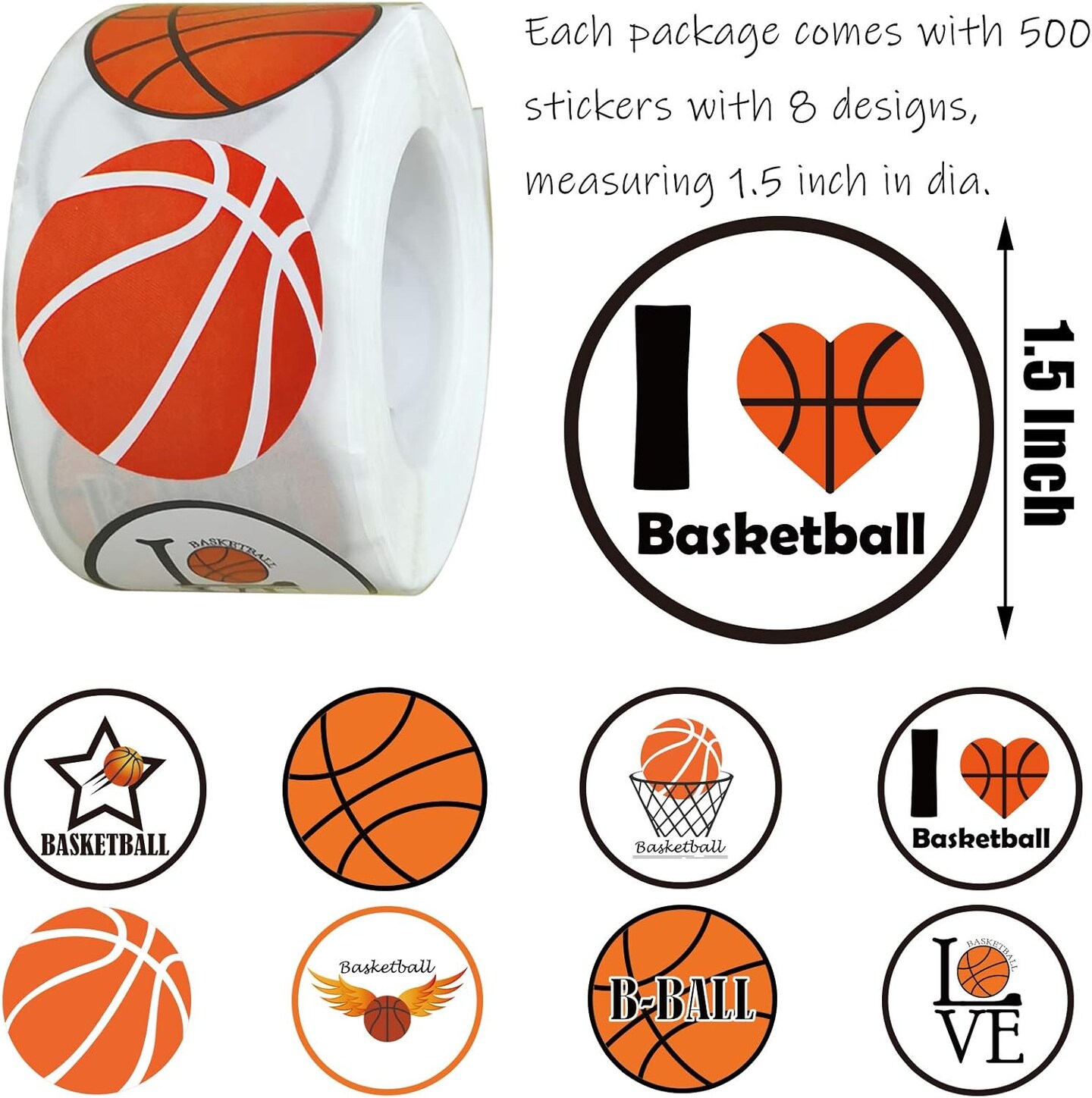 500 Pieces Basketball Labels Roll Stickers - Basketball Sport Party Supplies Decorations Favors Jar Containers Letter DIY Sticker Labels Decals