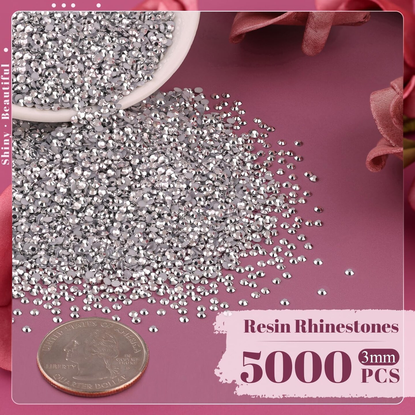5000PCS 3mm Resin Flatback Rhinestones with Pickup Pen and Tweezers (Silver)