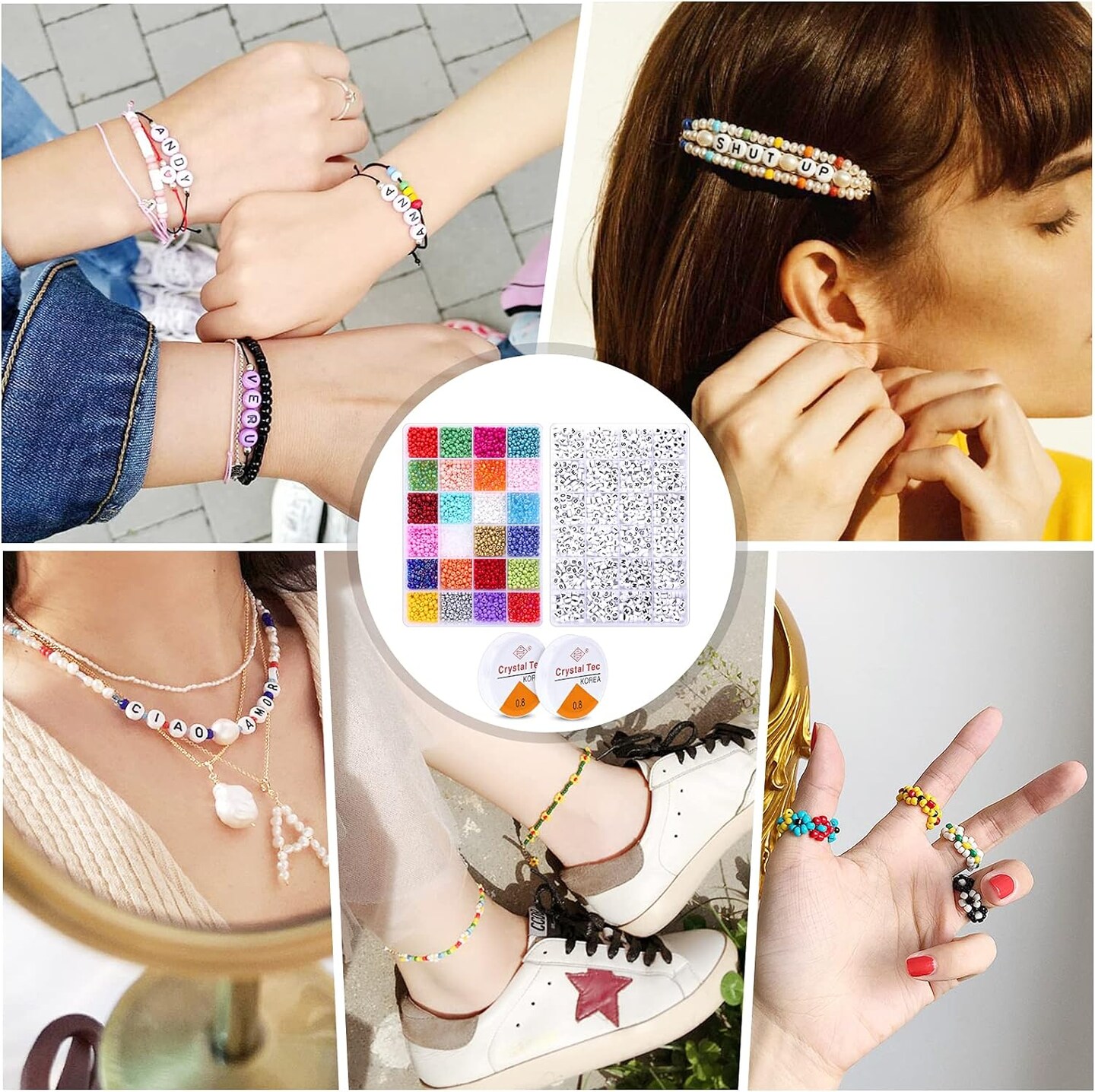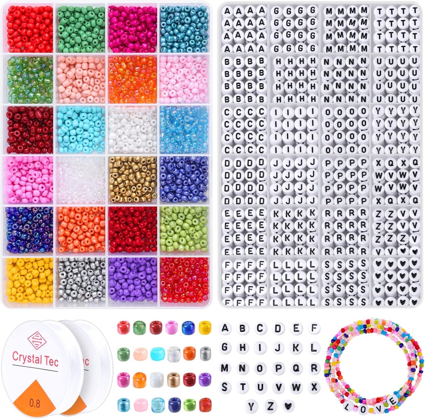 5000Pcs 4mm Seed Beads and Letter Beads 24 Colors Glass Beads Kit with 1200pcs Alphabet Beads for Jewelry Making, Jewelry Beads Set for Necklace Earring DIY Craft Jewelry Making Girls Christmas Gifts