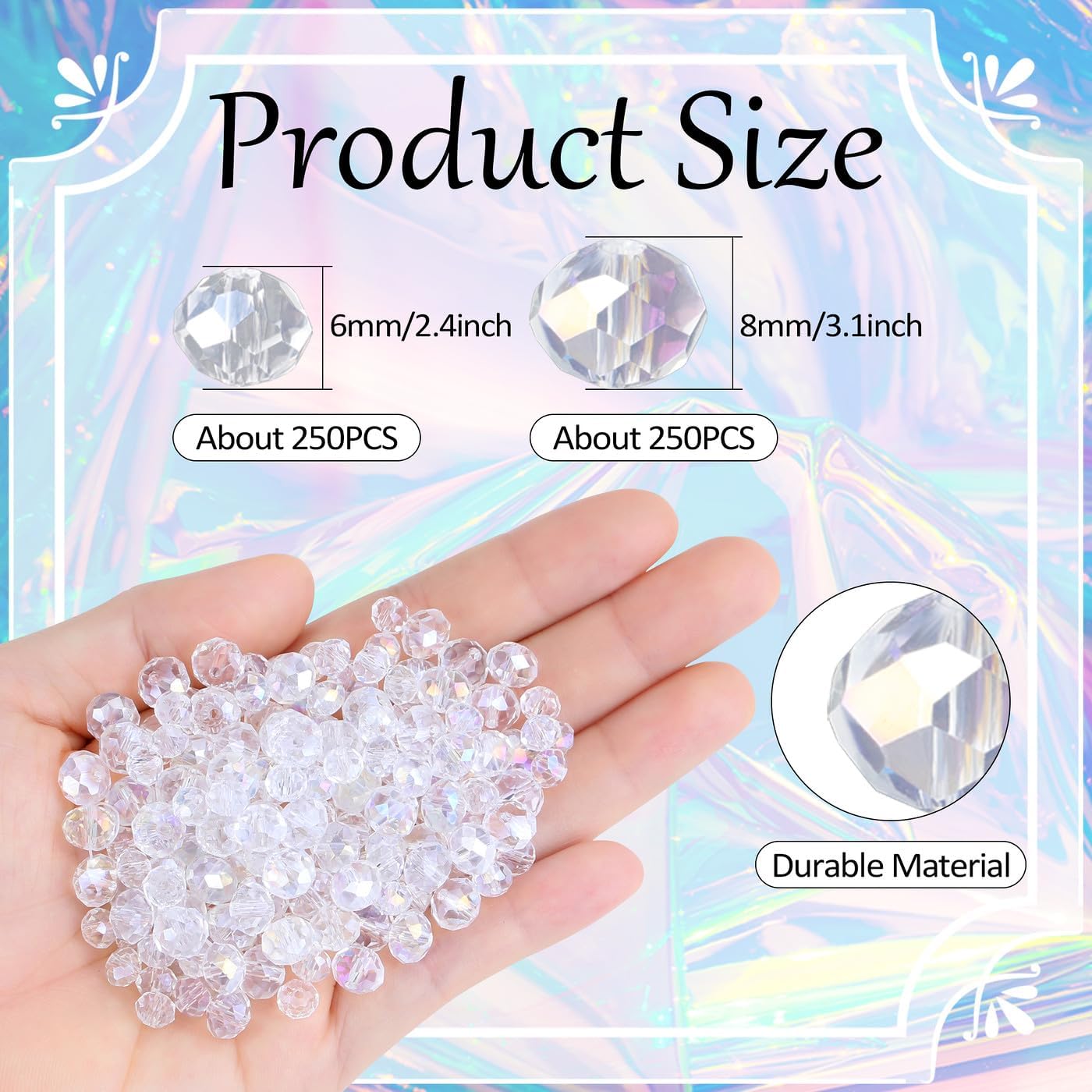 500pcs Crystal Glass Beads – Clear & Colorful Loose Beads (Bracelets 6/8mm, AB Color)