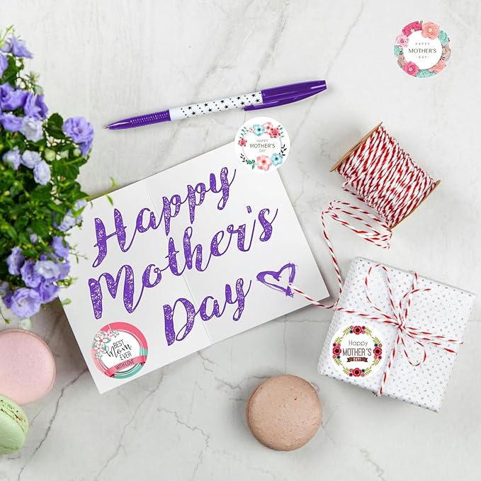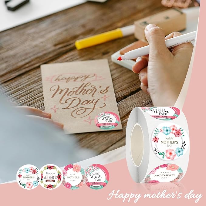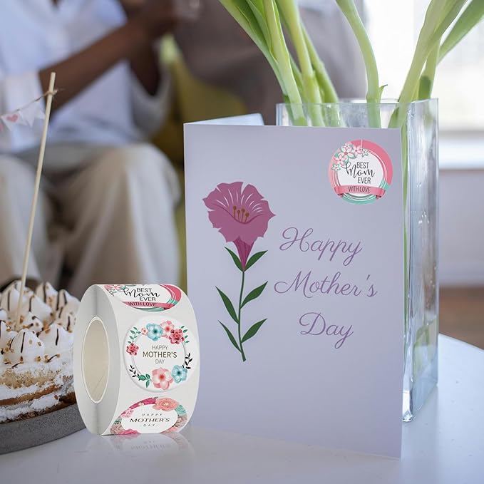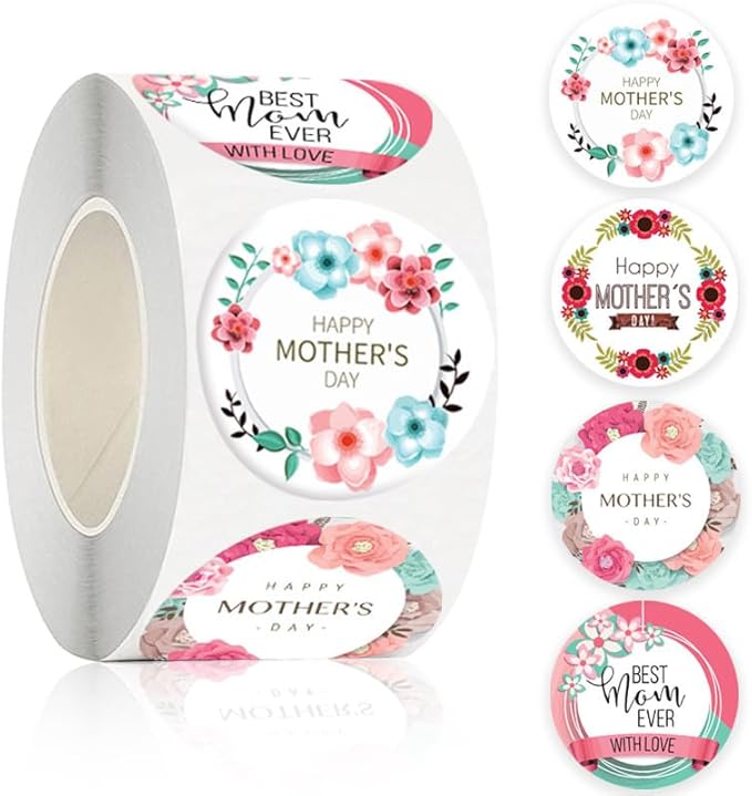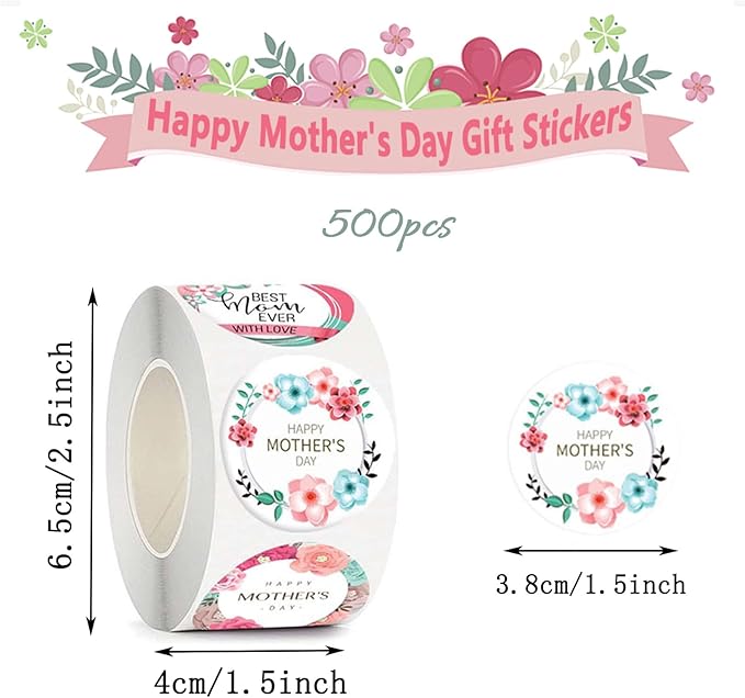 500PCS Happy Mother’s Day Sticker Roll – 1.5-Inch Round Floral Labels for Envelope Seals, Gift Wrap, DIY Cards, Party Favors & Box Decorations