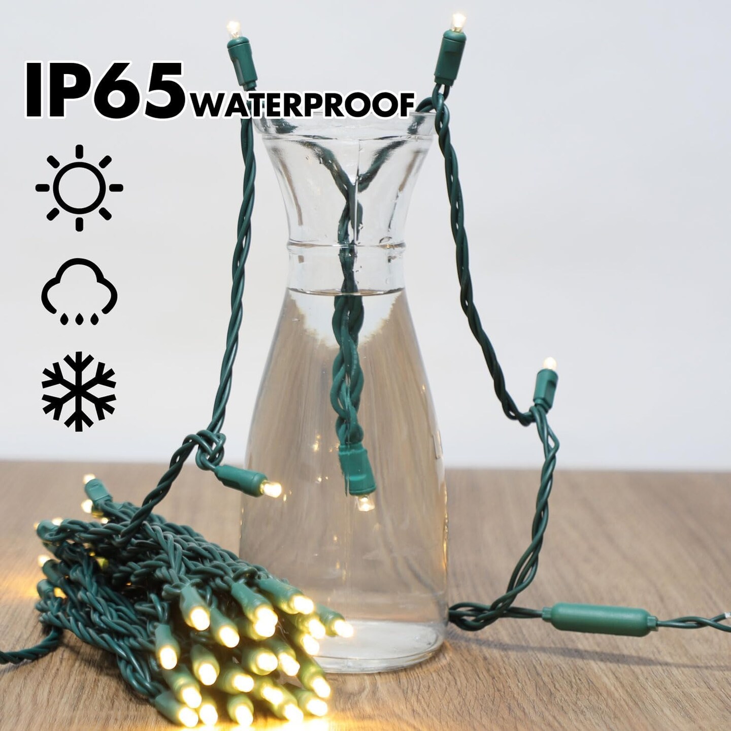 50Count String Lights, LED Christmas Lights, 6" SPACING,Green Wire,Warm White