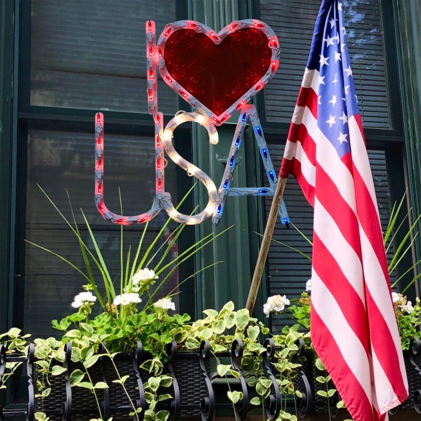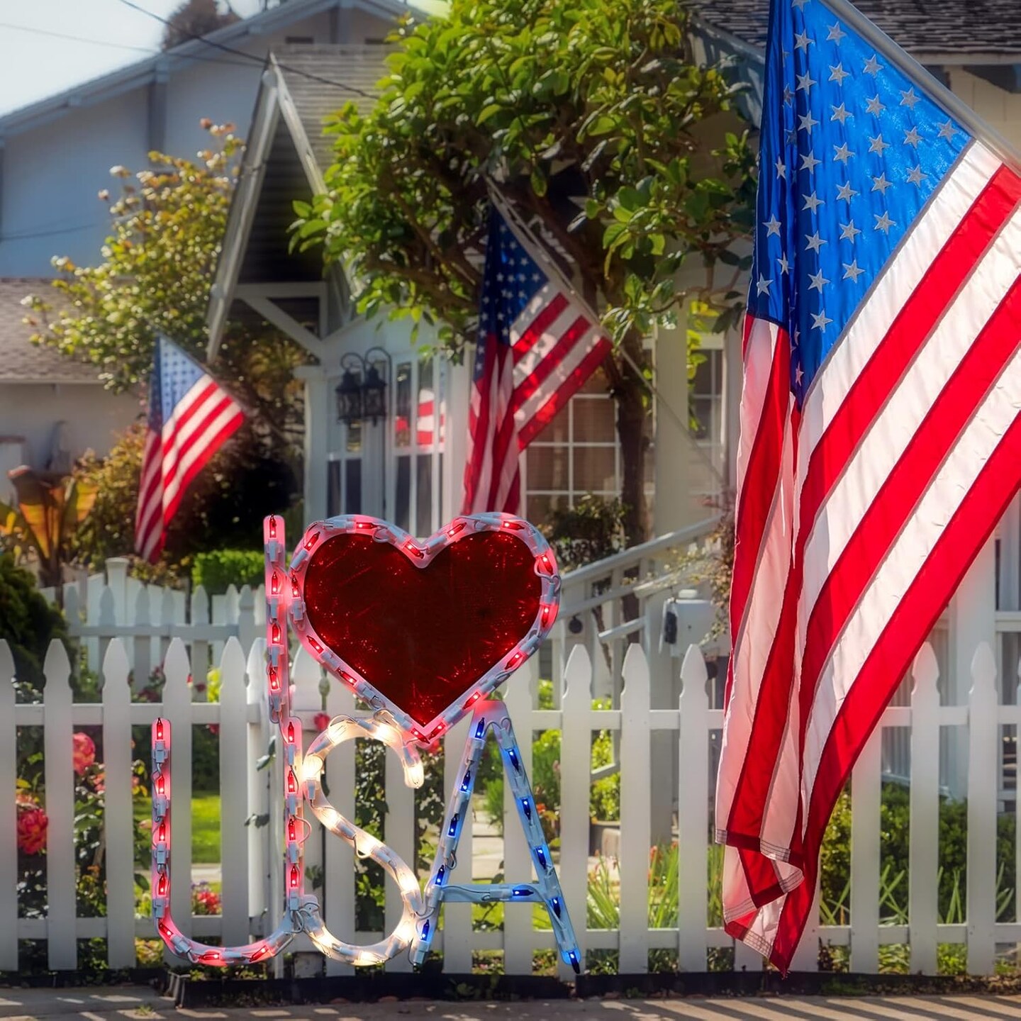 50L Independence Day Lights I Love USA Patriotic Window Lights, 4th July Decorations Outdoor Indoor Decor for Home