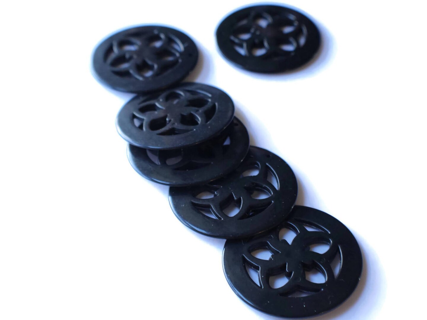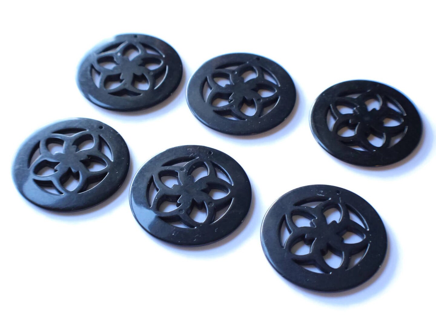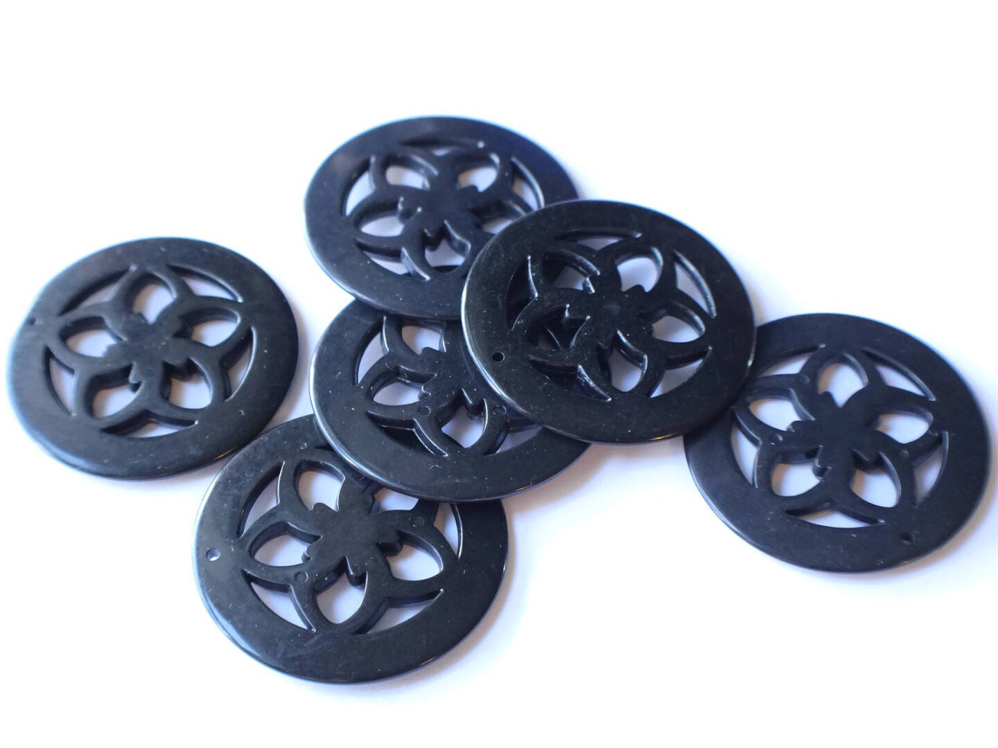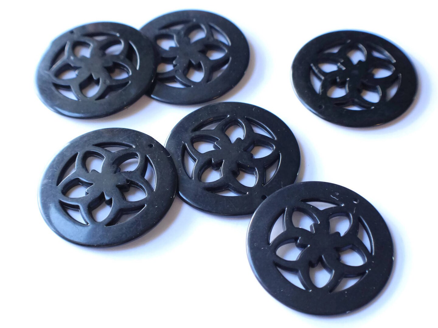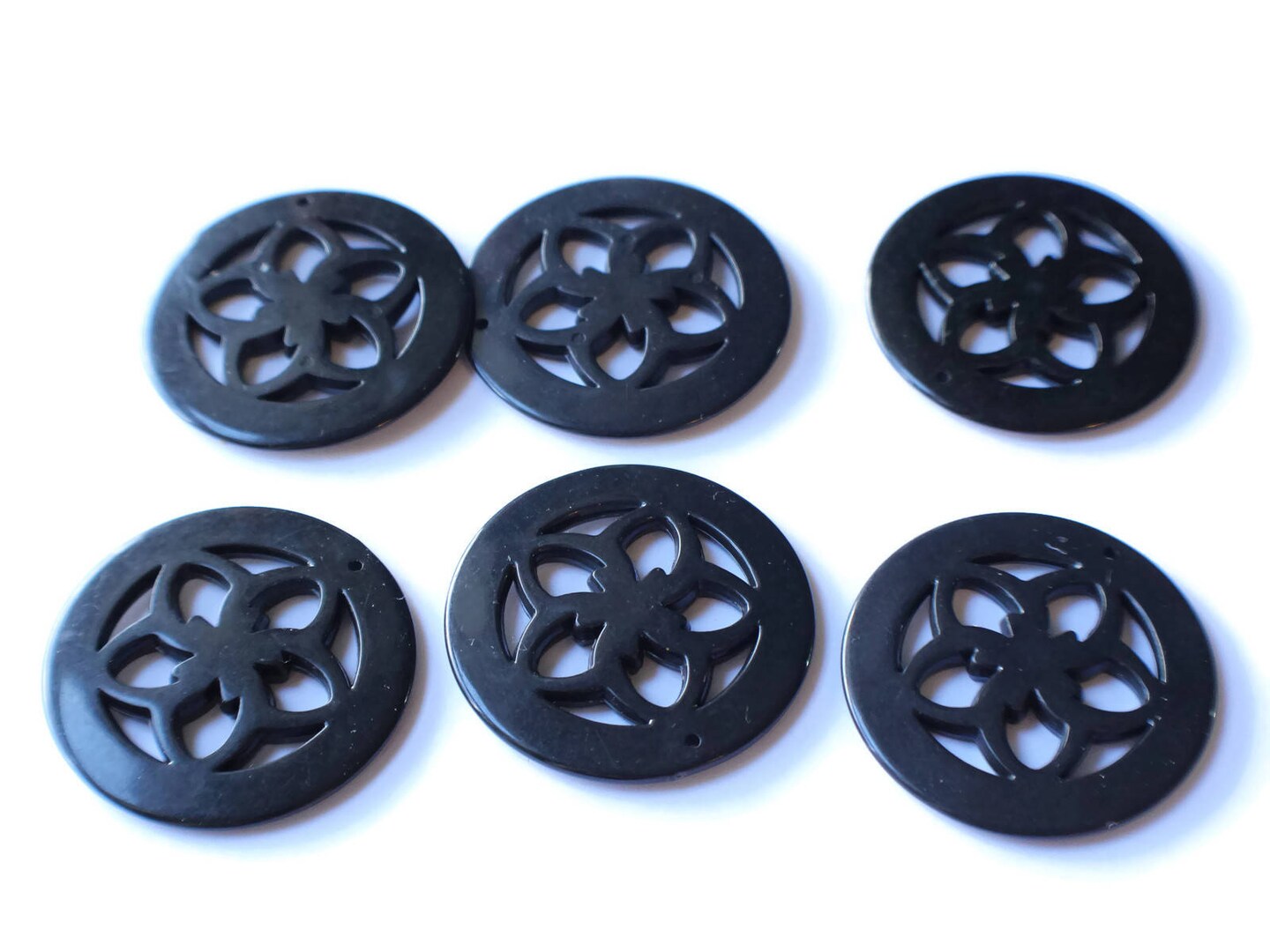 50mm Black Filigree Flower Pendants Large Plastic Drop Beads