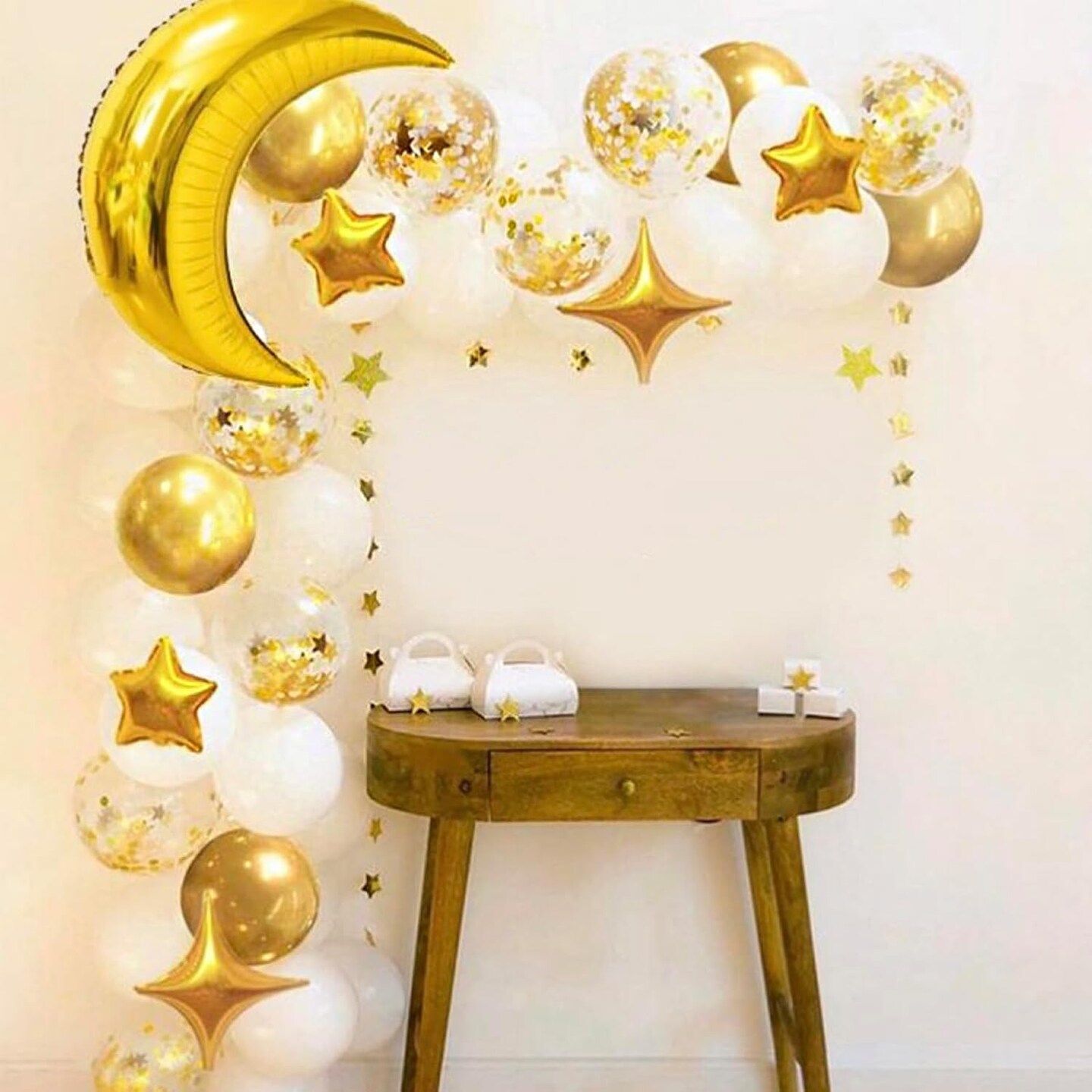 50-Pack 10in Gold Star Foil Balloons with 60 Glue Dots & 5 Straws – Party Decor for Birthday, Wedding & Baby Shower