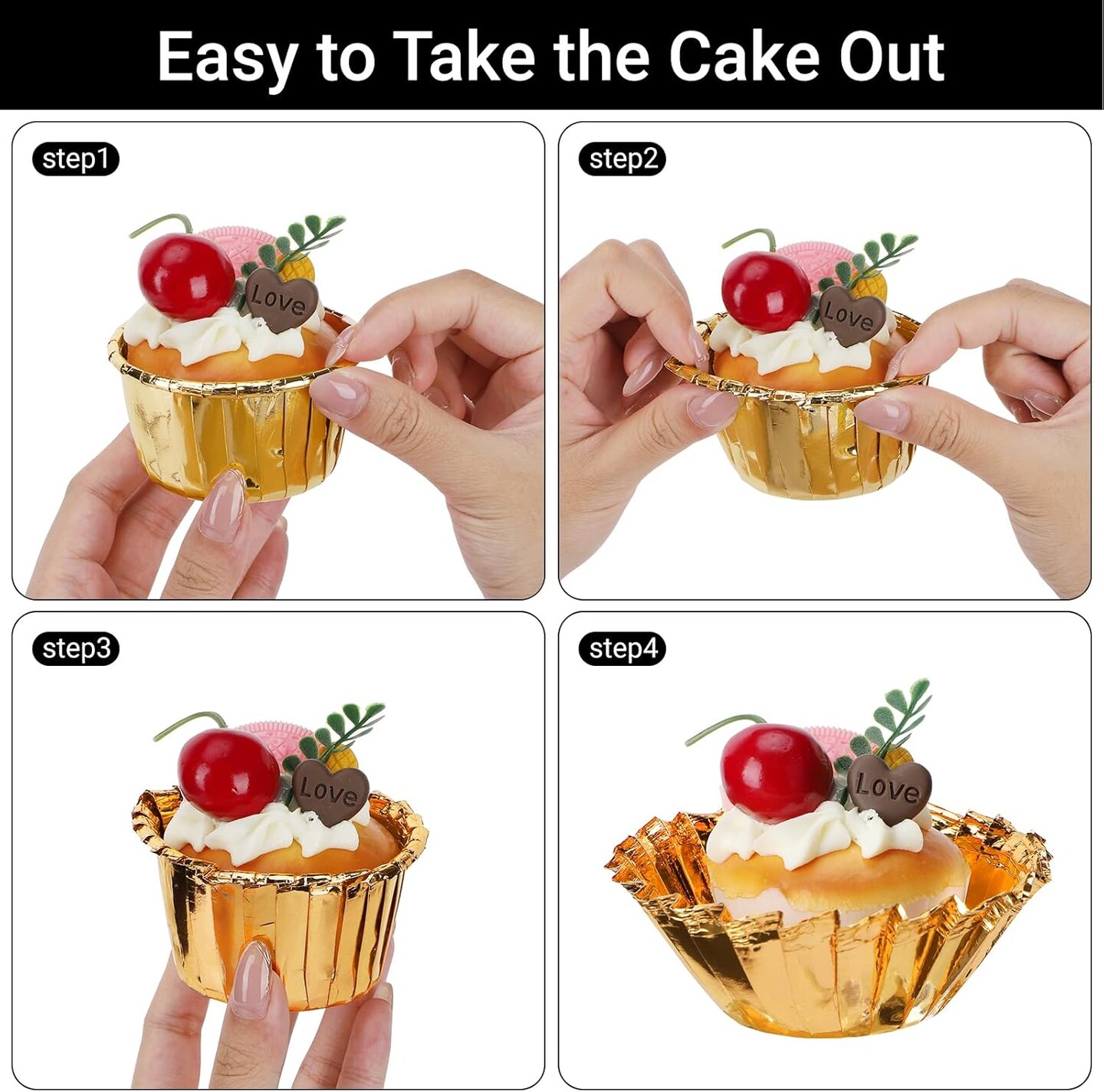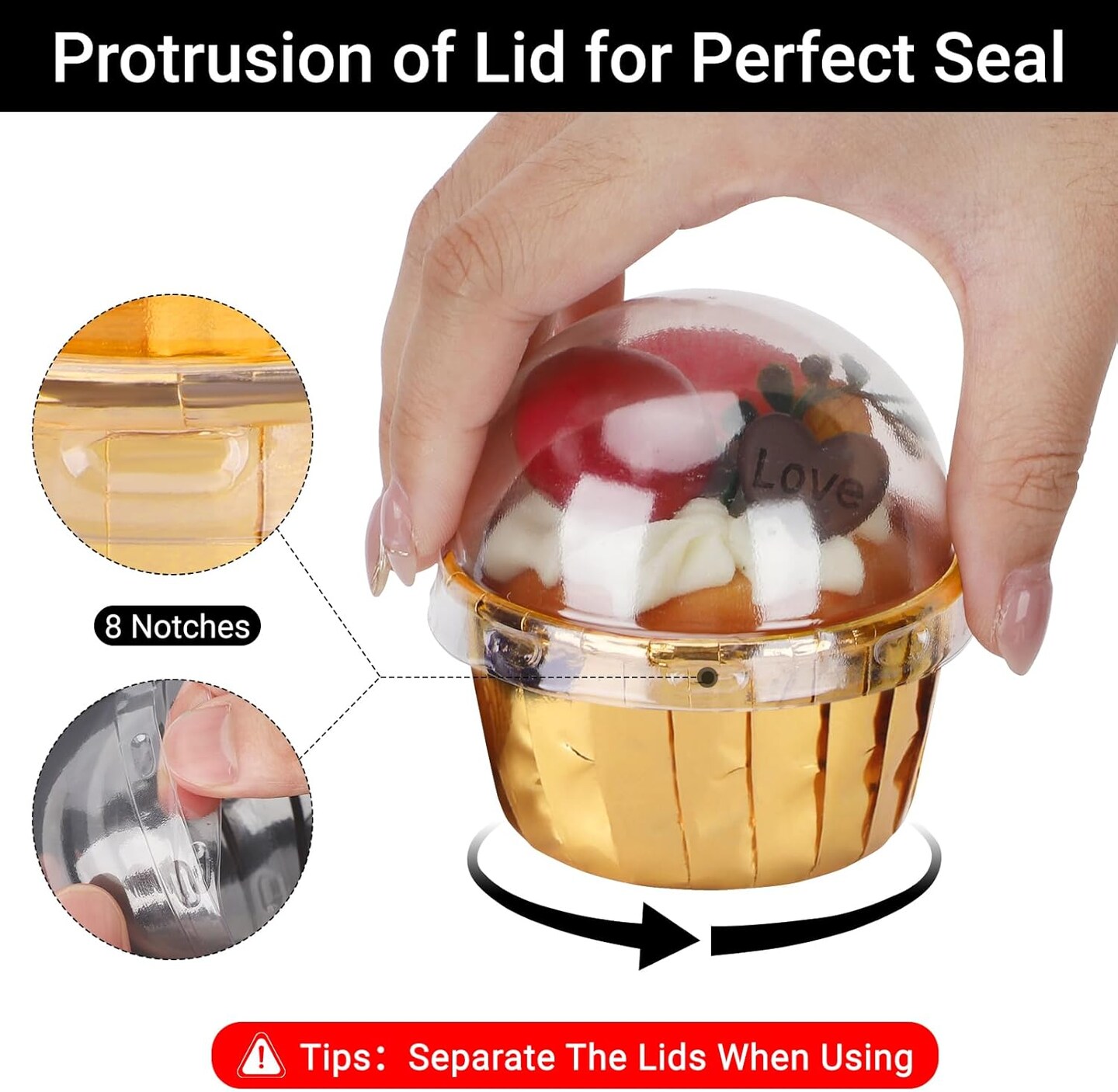 50-Pack 3.5oz Gold Aluminum Cupcake Cups with Lids – Disposable Mini Muffin Liners for Baking, Weddings, Birthdays & Parties