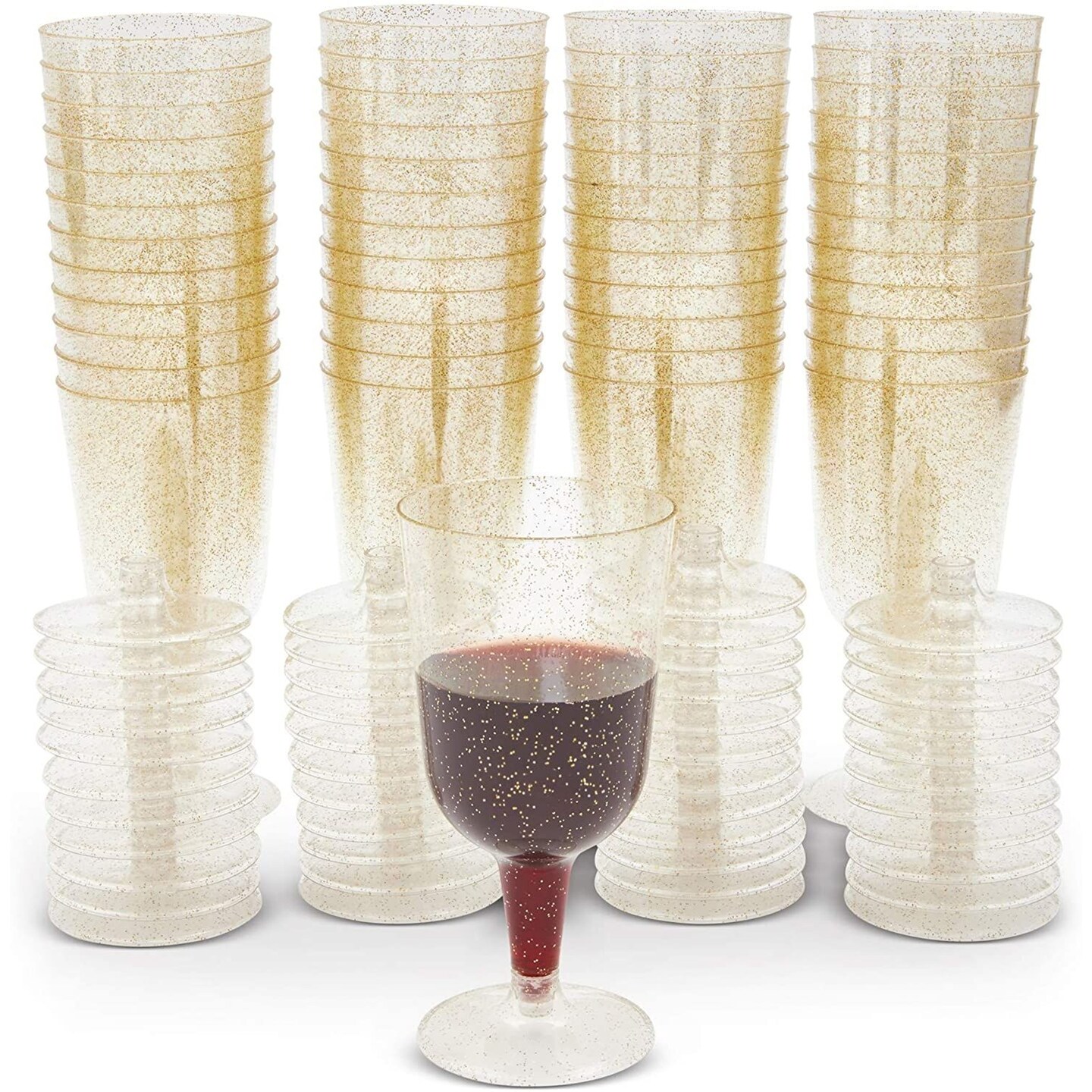 50-Pack Gold Glitter Plastic Wine Glasses (7 oz)