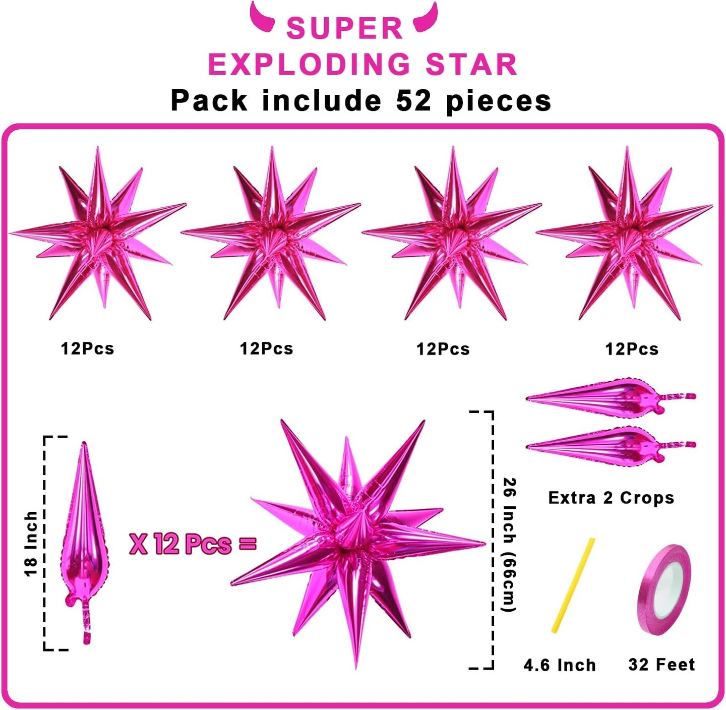 50-Pack Hot Pink Star Balloons – Metallic Foil Birthday, Graduation & Party Decor