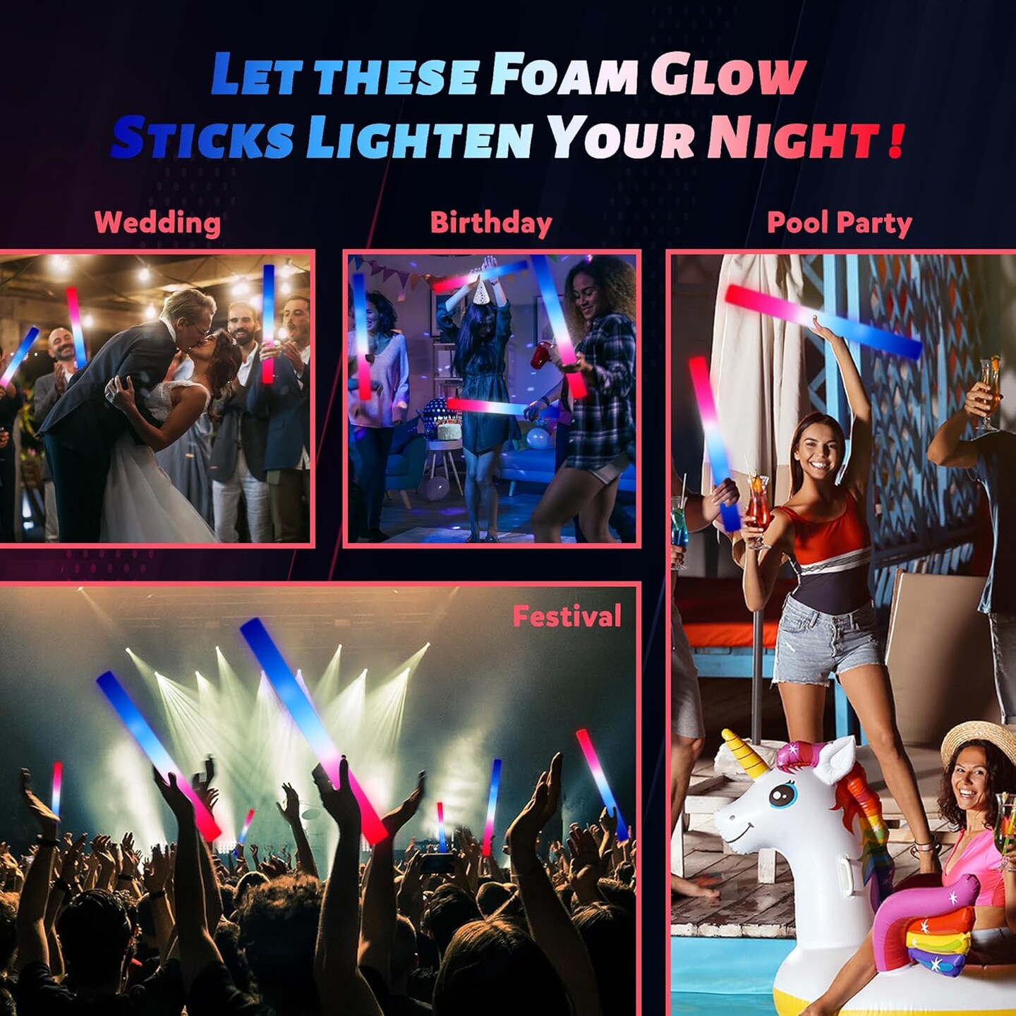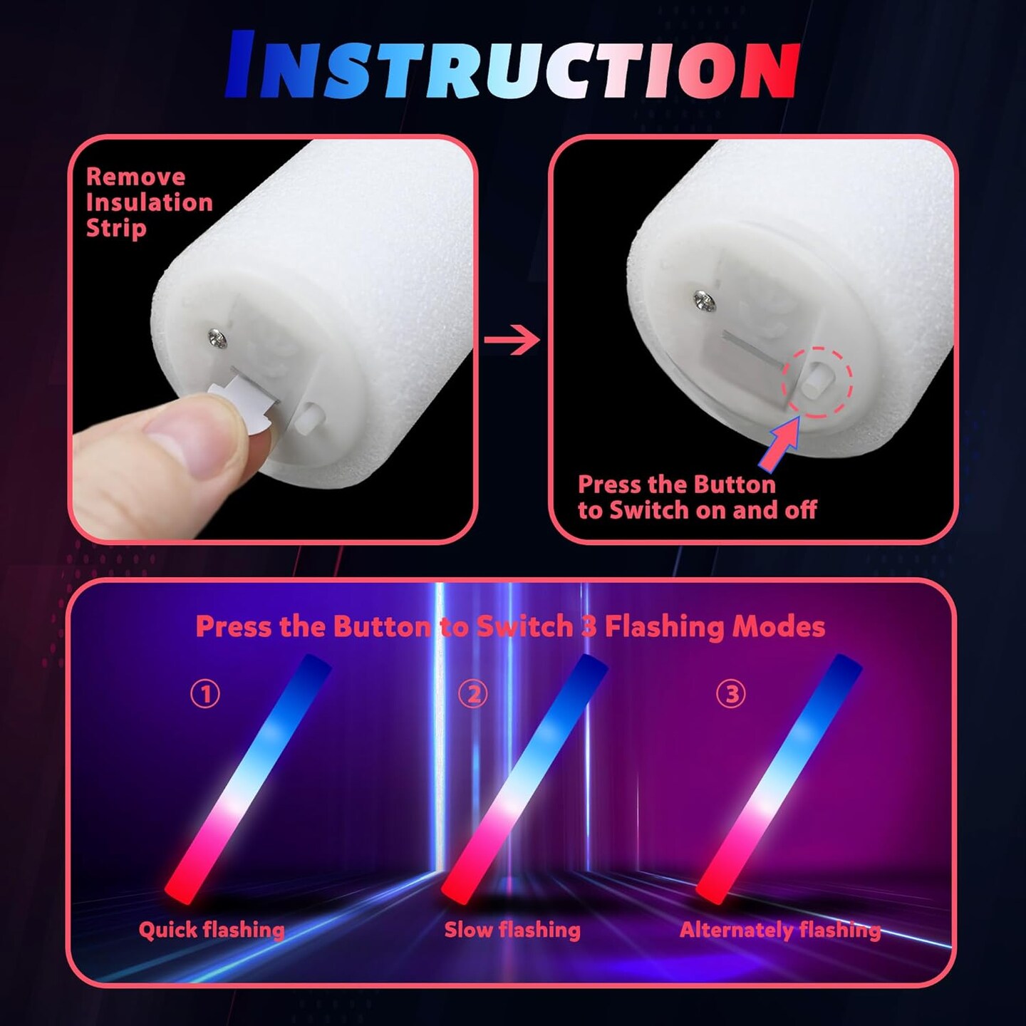 50Packs 3 Colors Foam Glow Sticks Red White Blue, Patriotic Events Parades, Party Decorations, Light up Glow in Dark Bulk Supplies For Party,Wedding,4th of July,Campaign Night