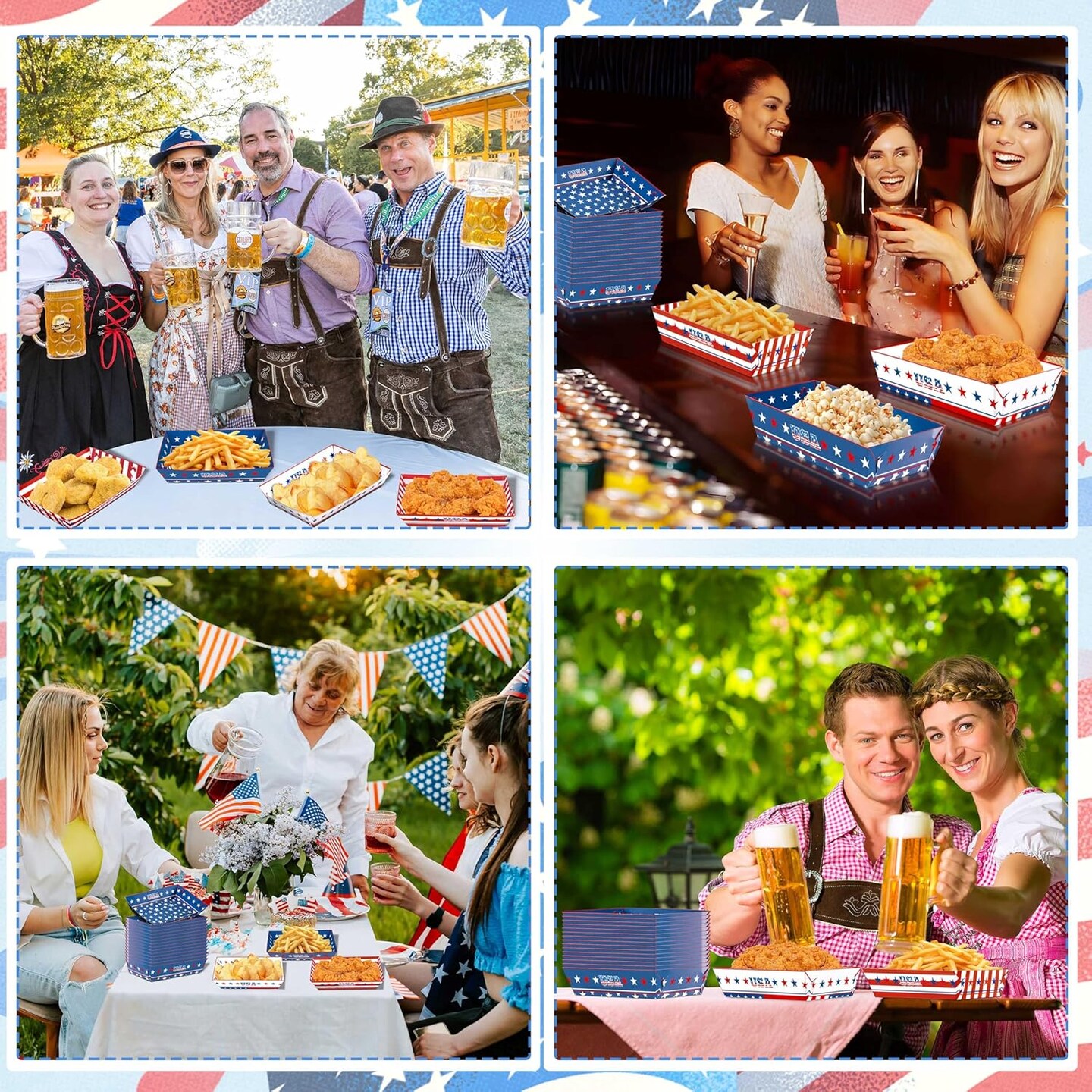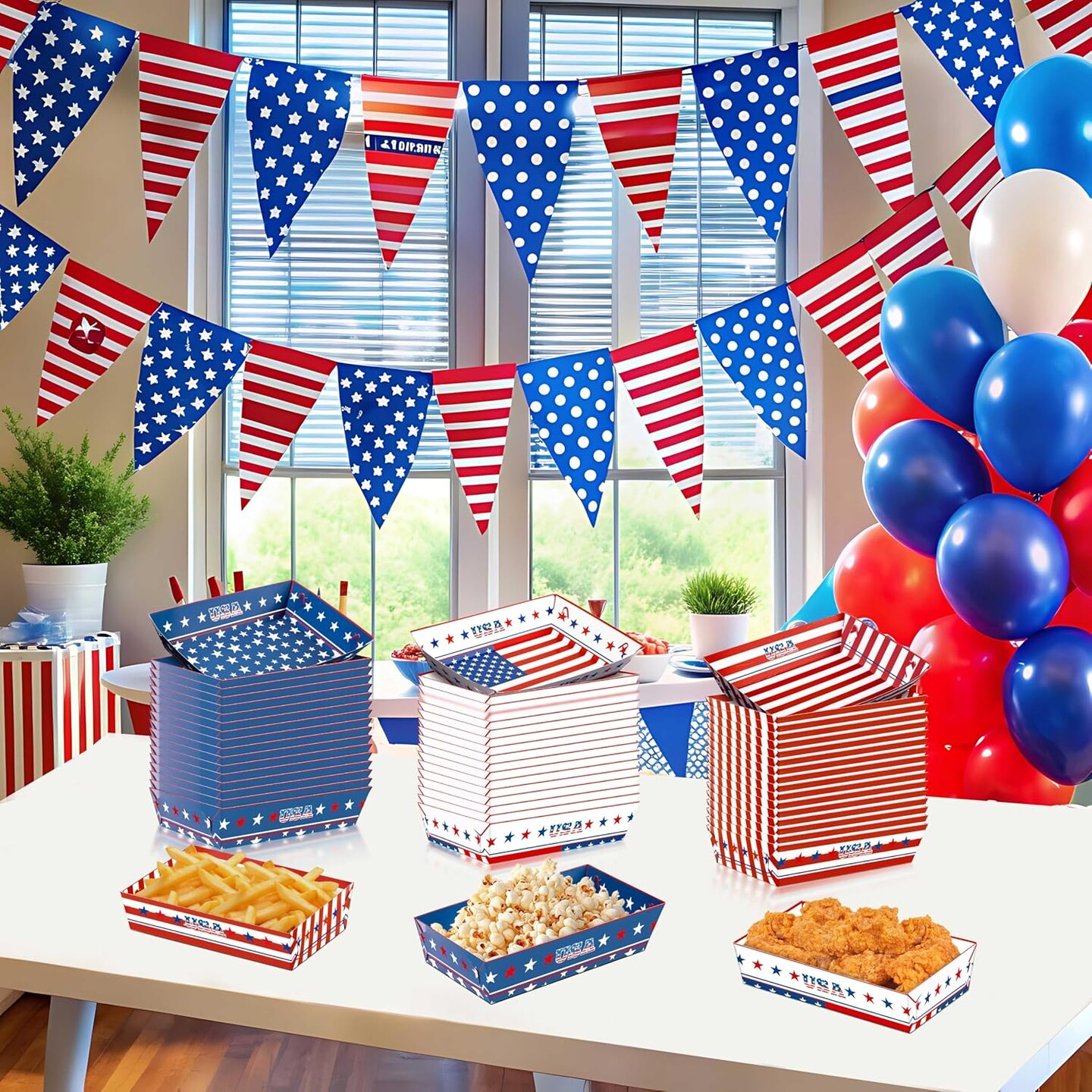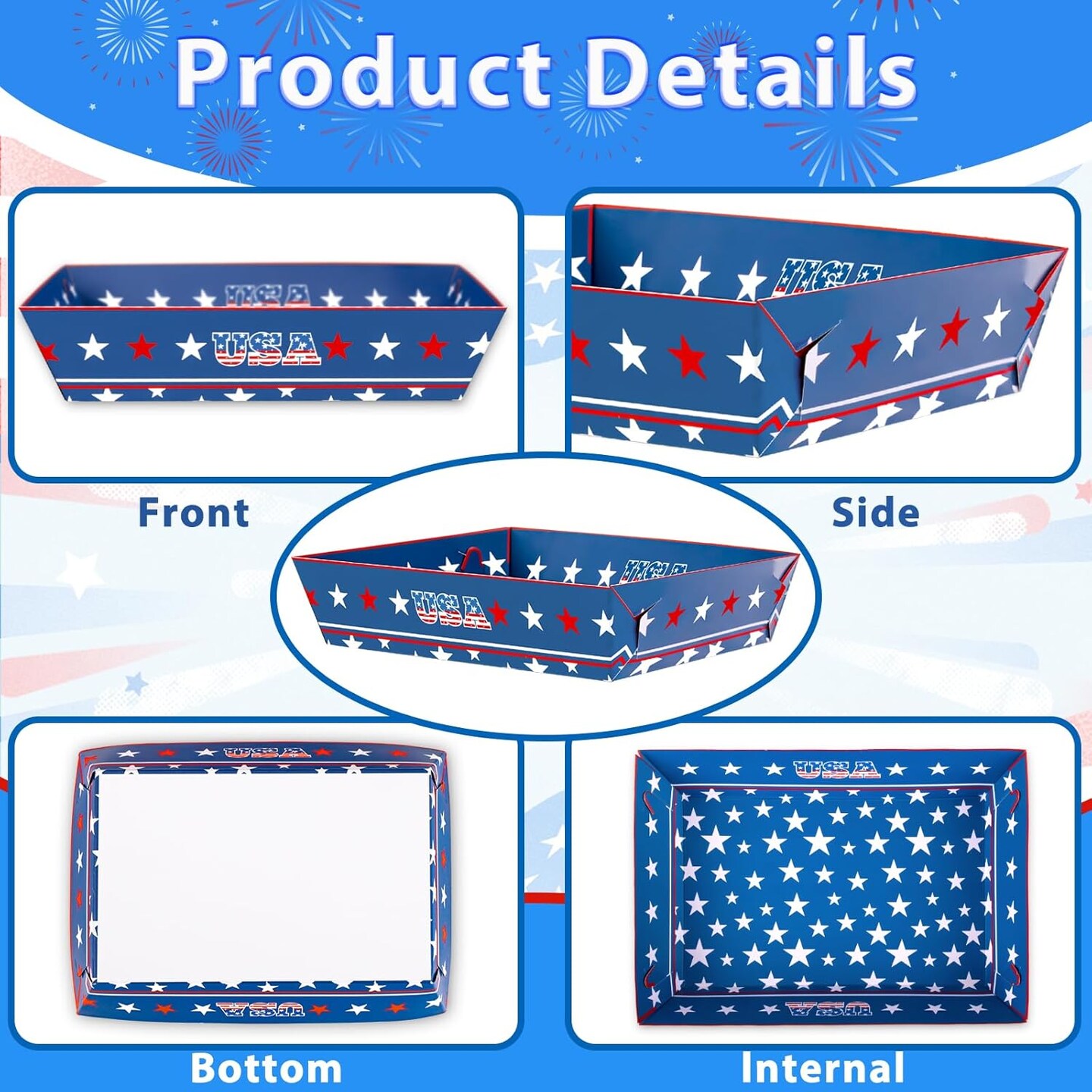 50Packs Fourth/4th of July Paper Food Trays Decorations Disposable Serving Plates
