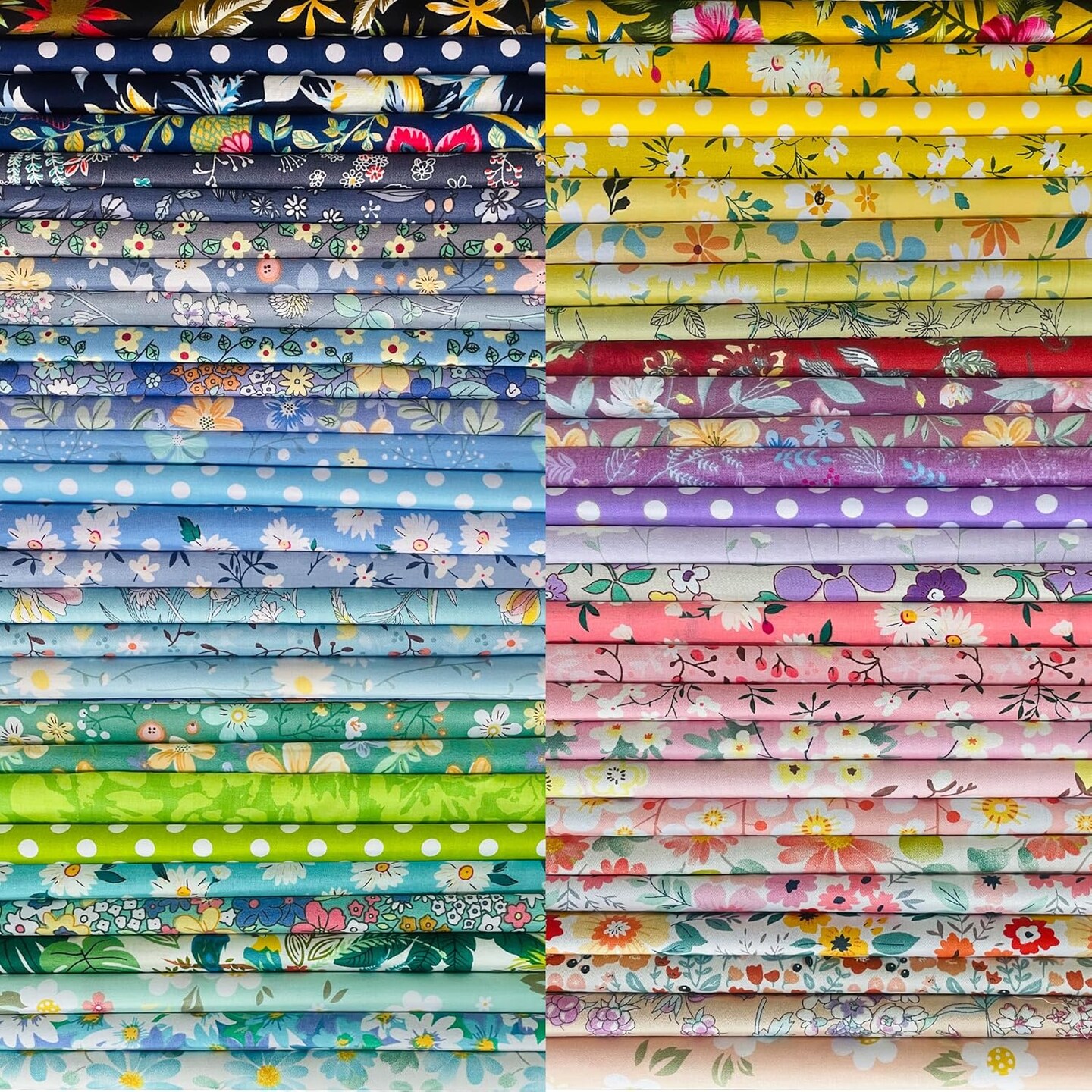 50pcs 10 x 10 inch Multicolor Cotton Precut Fabric Bundle Squares(Floral)