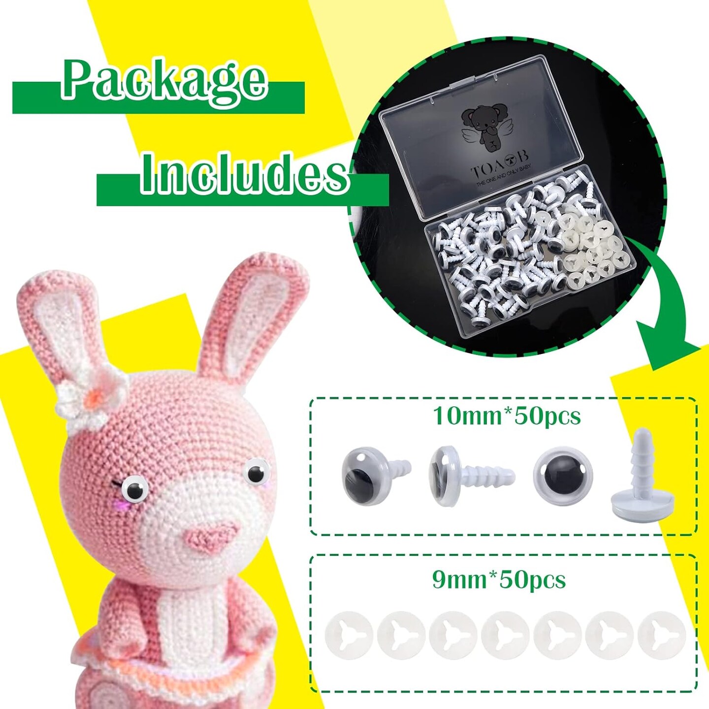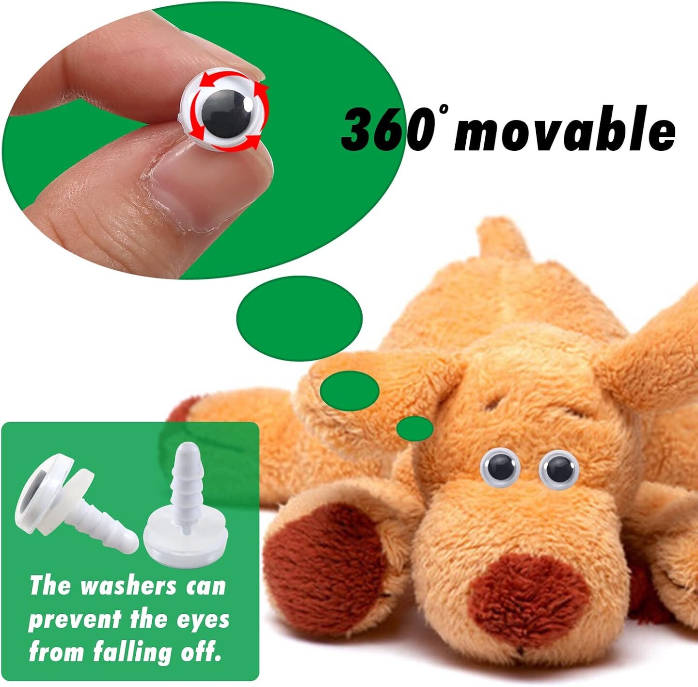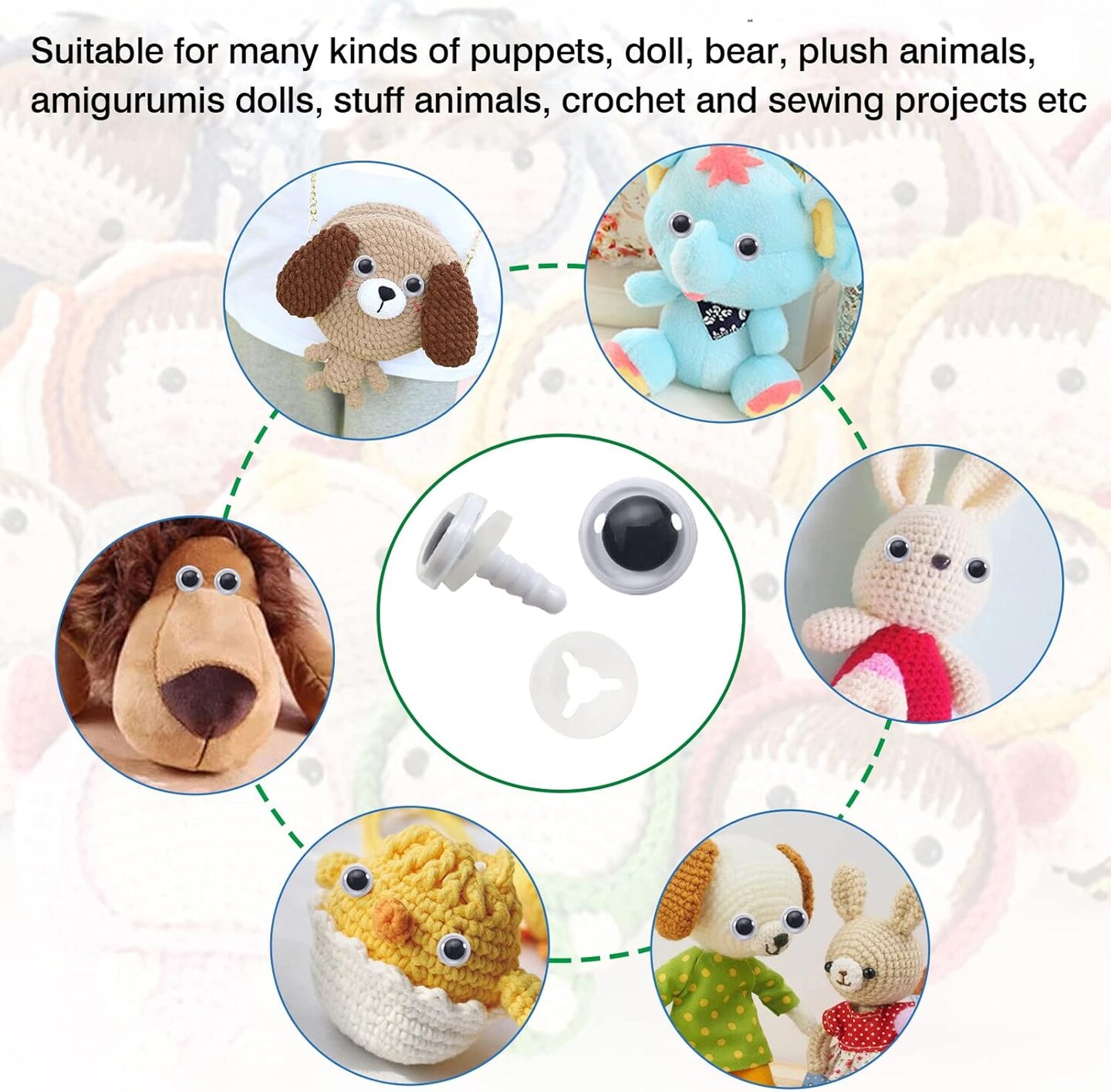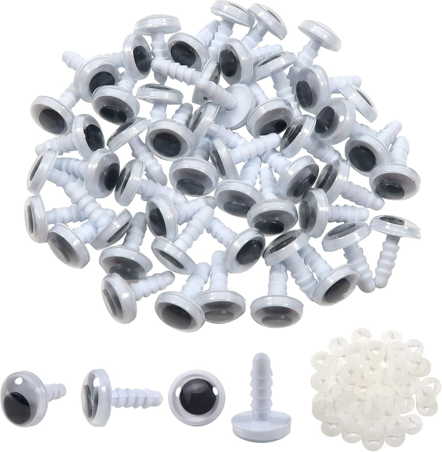 50PCS 10mm Black Wiggle Googly Safety Eyes with Washers – Plastic Craft Eyes for DIY Amigurumi, Dolls, Plush Toys, Bears, and Arts & Crafts