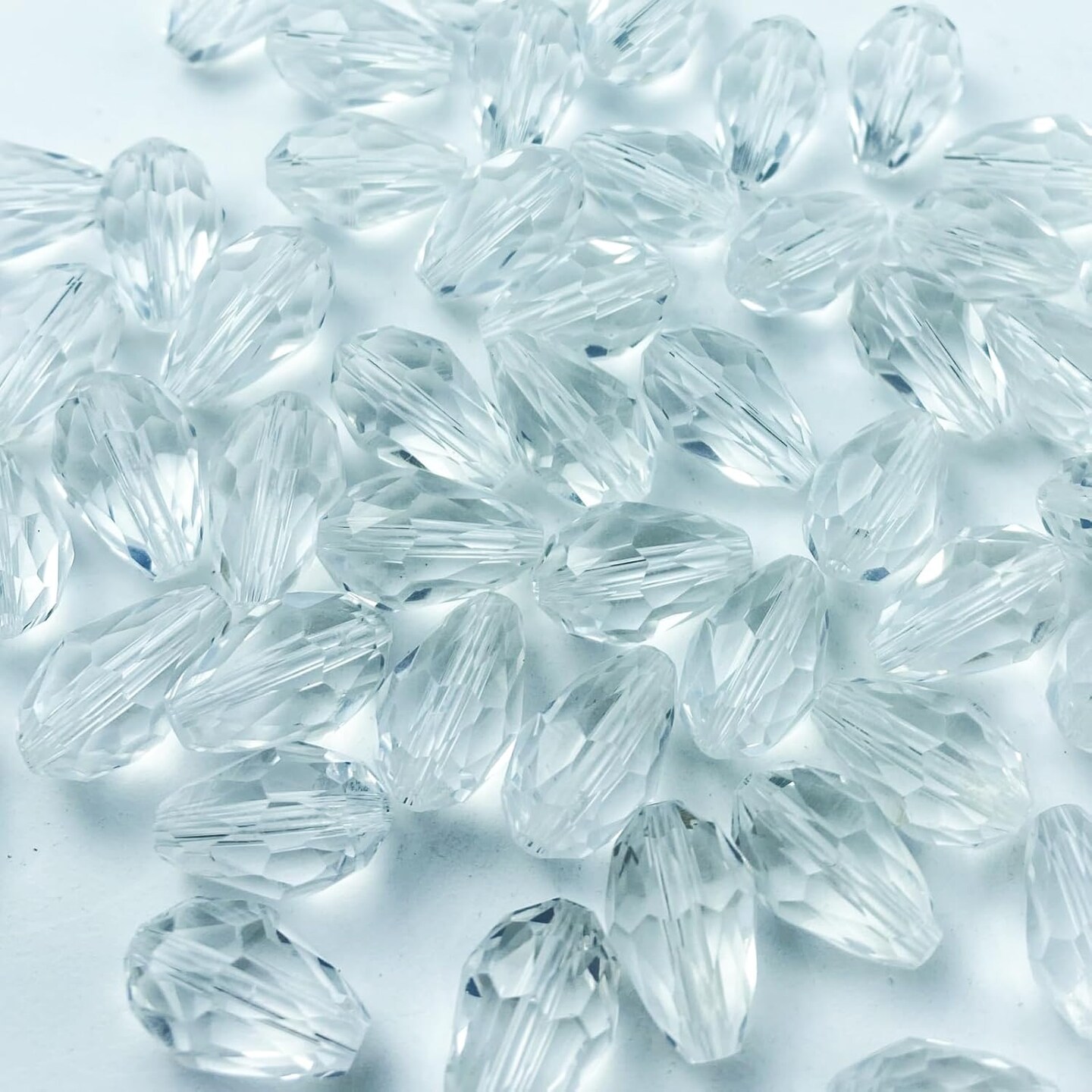 50pcs 10x15mm Teardrop Crystal Glass Beads Vertical Hole Faceted Glass Teardrop Spacer Beads for Bracelets Necklace Earring DIY Jewelry Making Craft(Transparent)