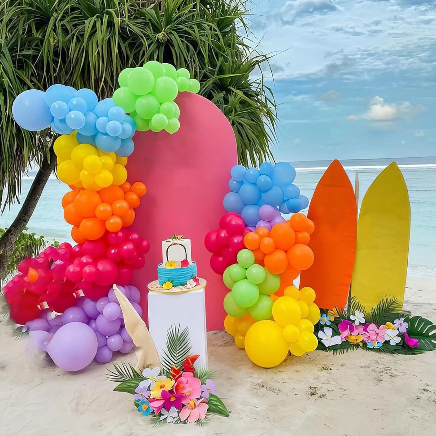 50Pcs 12 Inches Yellow Orange Hot Pink Lime Green Neon Balloons(Green Blue Yellow)