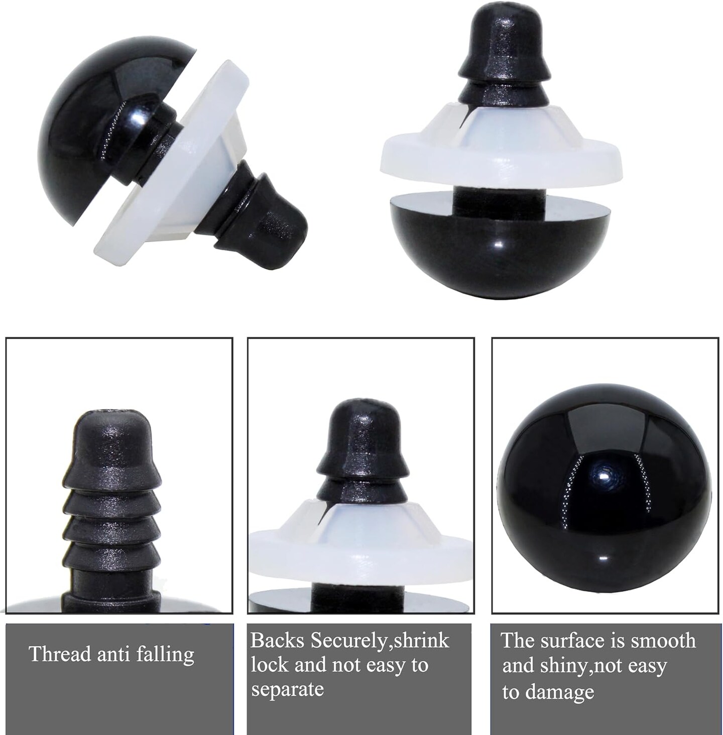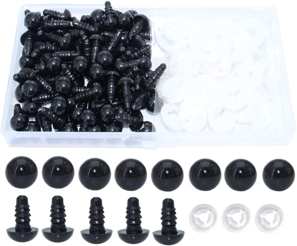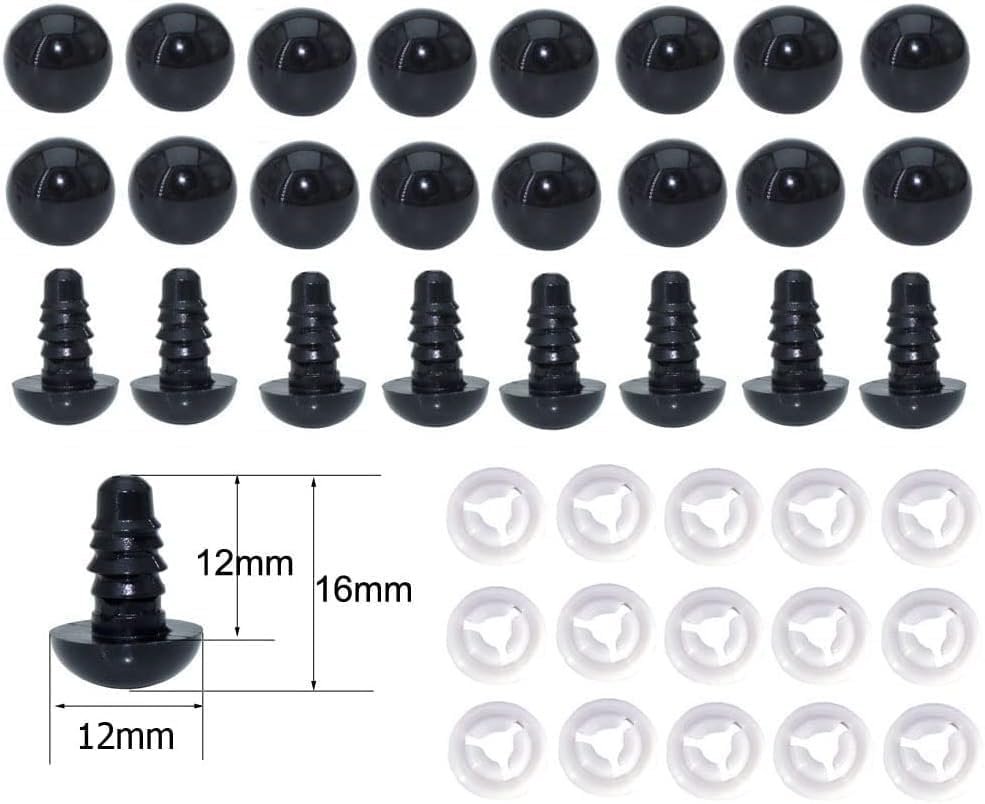 50pcs 12mm Black Solid Plastic Safety Eyes with Washers – DIY Doll, Puppet & Plush Animal Craft Supplies