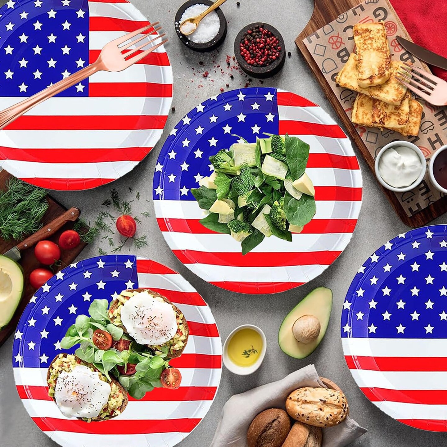50Pcs 4th of July Paper Plates,4th of July Themed American Flag Patriotic Party Supplies
