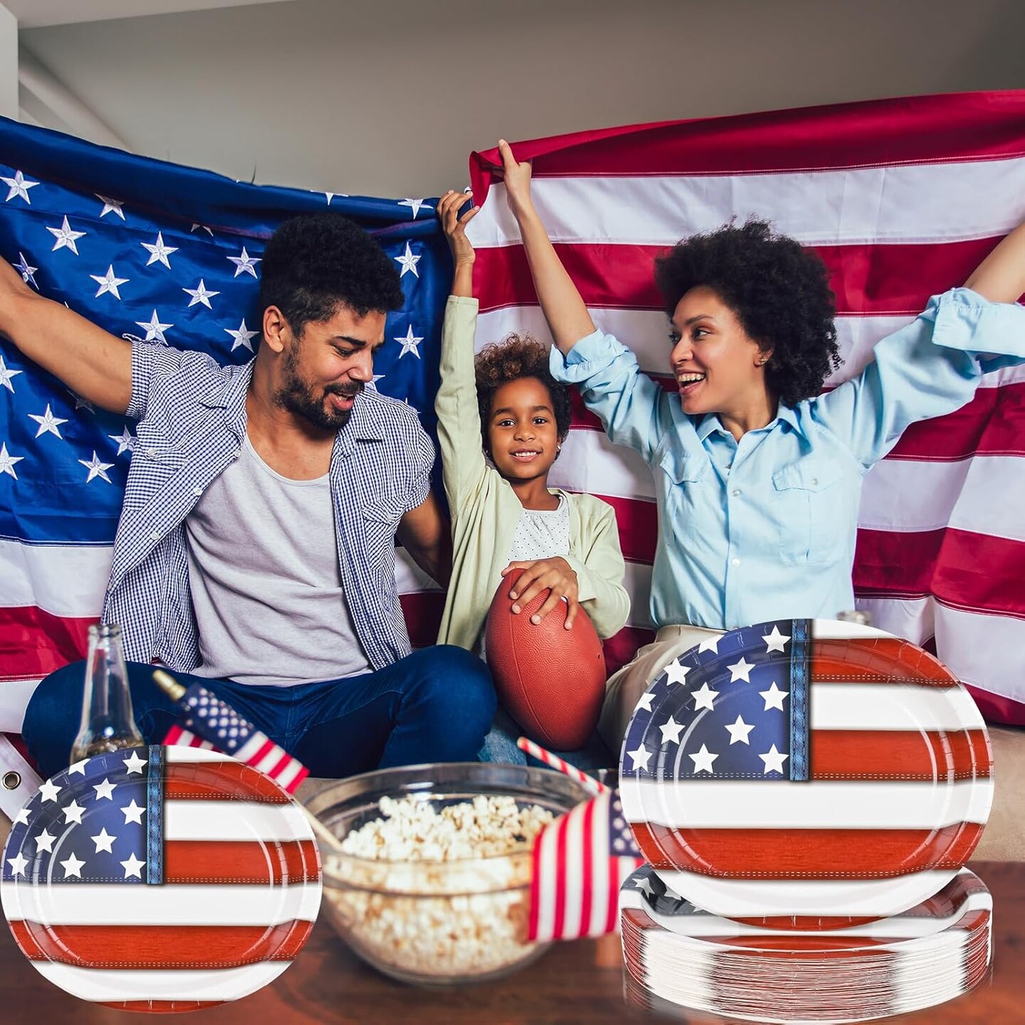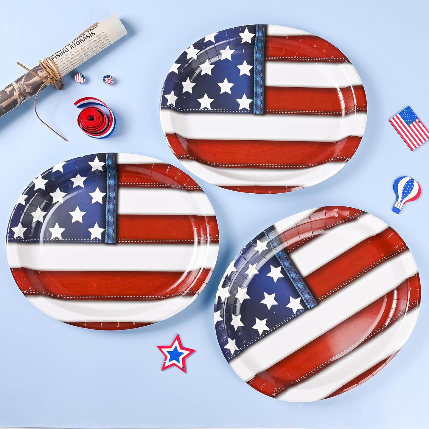 50Pcs American Flag Patriotic Oval Plates Party Supplies 4th Of July Oval Plates Heavy Duty Disposable Independence Day Paper Plate for Veterans Election July 4 Independence Day Decor,10 * 12 Inch