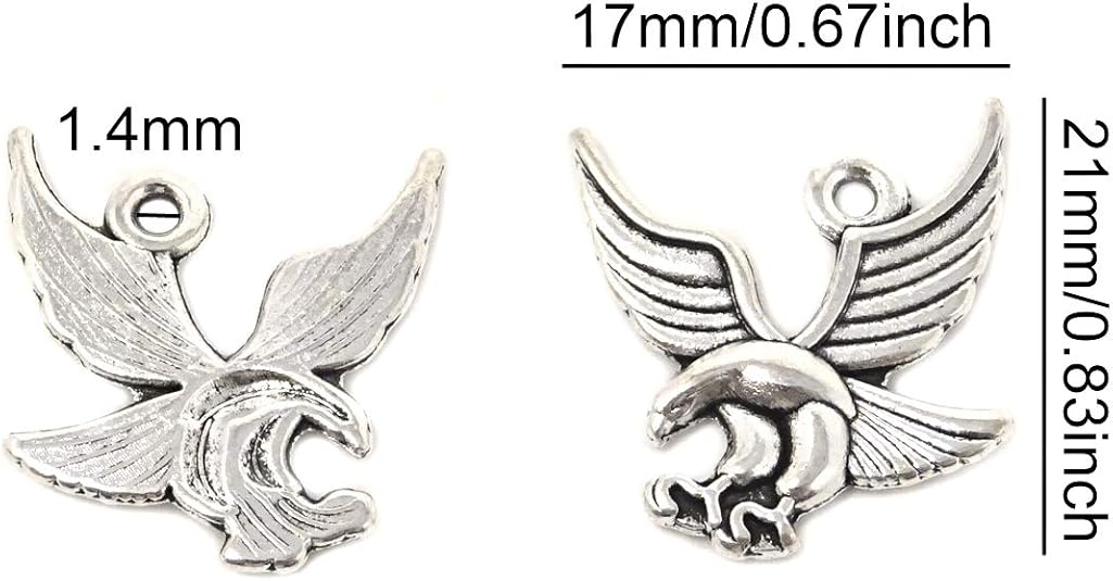 50PCS Antique Silver Alloy Eagle Charms Pendants for Jewelry Making