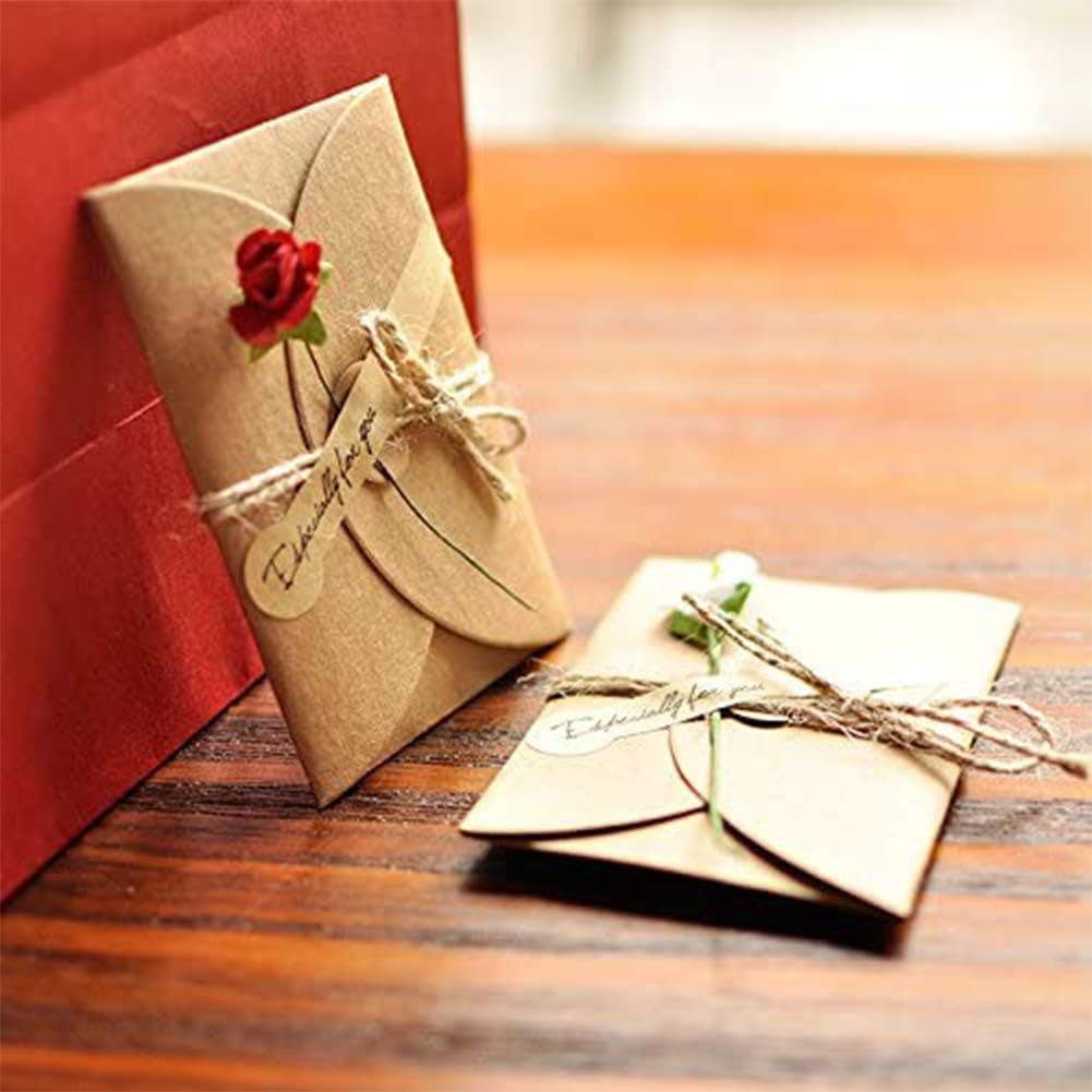 50PCS Brown Gift Card Envelopes with Dried Flowers- 4.2" x 2.9"