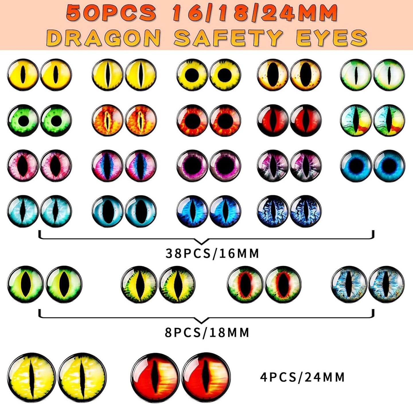 50pcs Safety Eyes for Amigurumi with Washers – 16/18/24mm Dragon & Animal Craft Eyes for Crochet Dolls, Plush Toys, and Clay Dolls