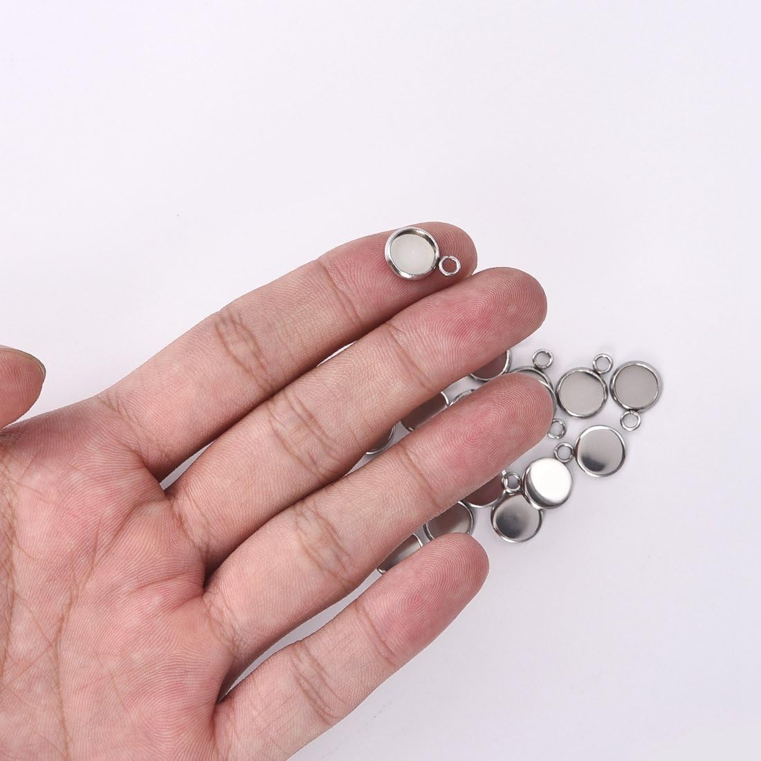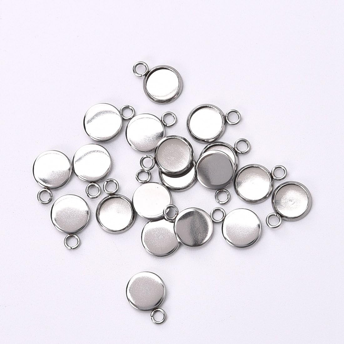 50Pcs Silver Stainless Steel Pendant Trays
