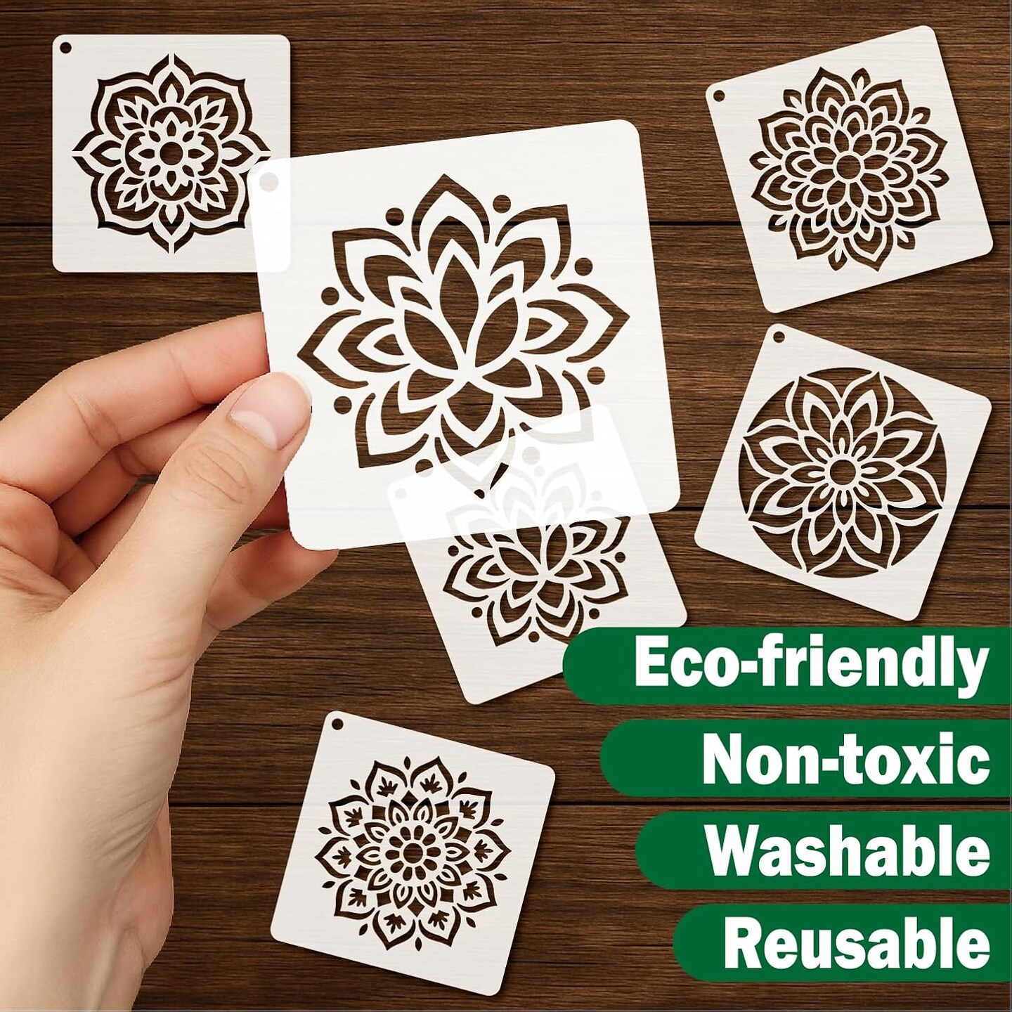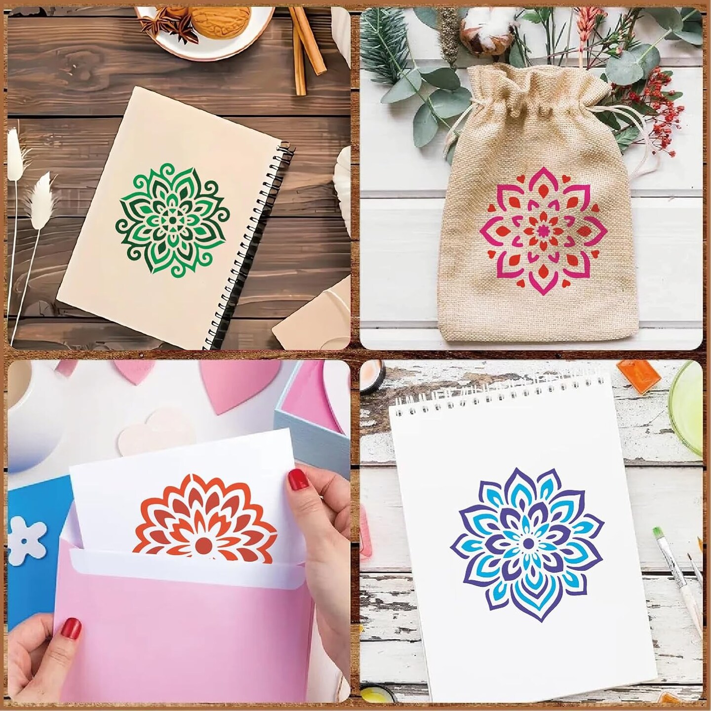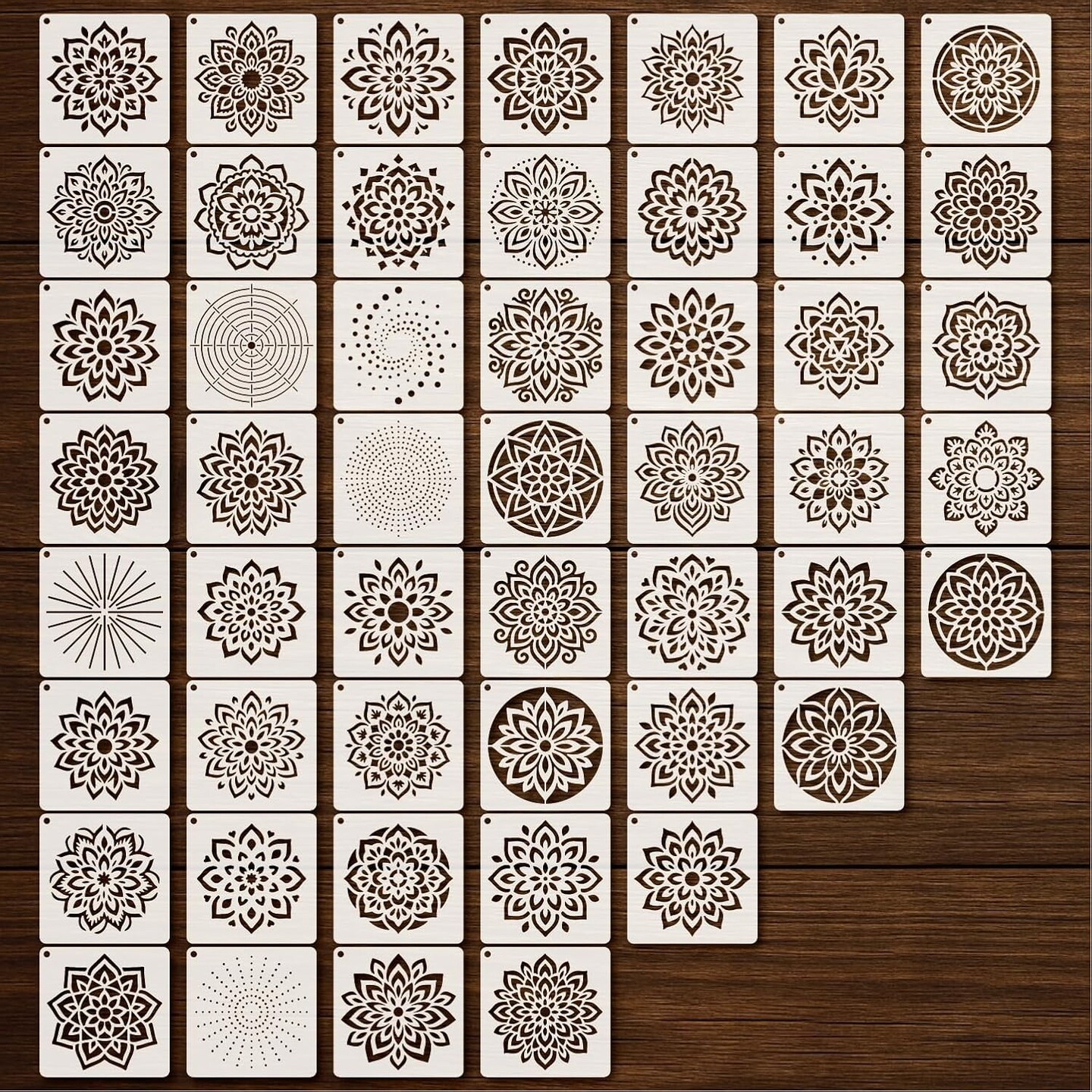 50-Piece Mandala Stencil Set (4 Inch) – Reusable Plastic Craft Paint Templates for DIY Art on Wood, Fabric, Wall, Window, Canvas & Home Decor