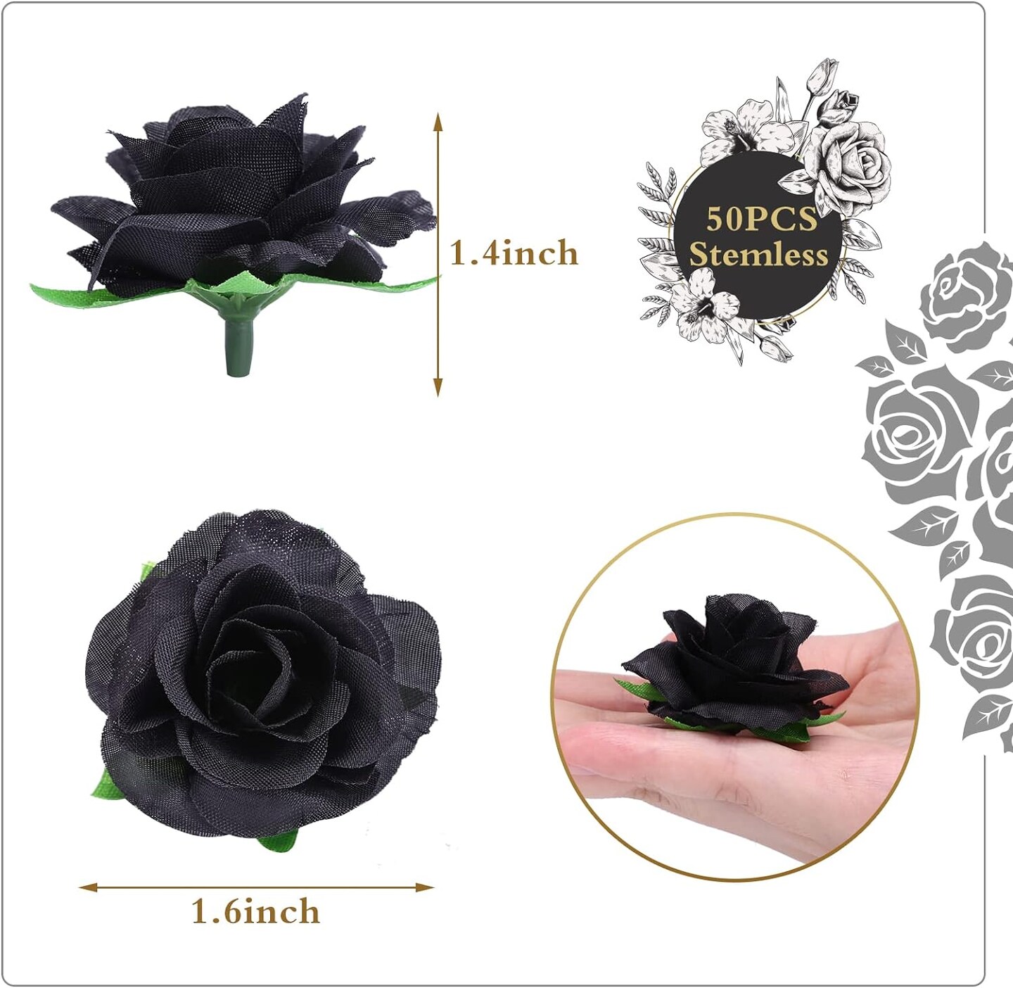 50-Pieces 1.6" Artificial Flower Heads Silk Roses