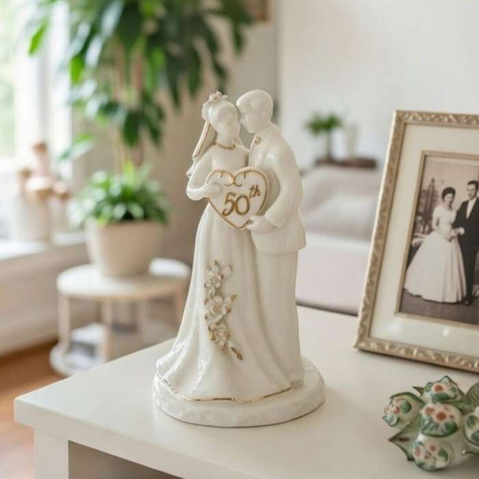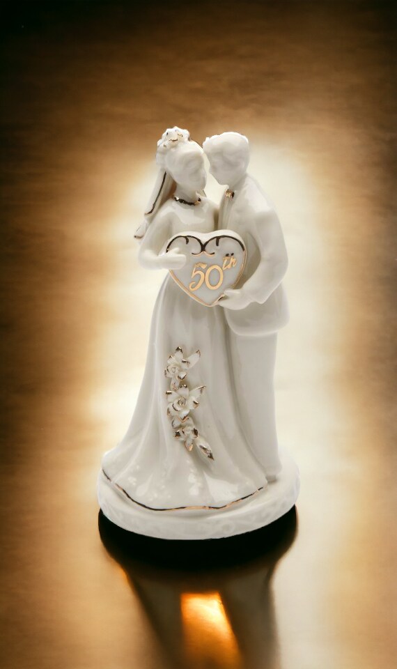 50th Anniversary Milestone-The Golden Wedding Anniversary-Hand Crafted Ceramic Cake Topper with Golden Accents, Anniversary Décor, Anniversary Party Gift, 50th Celebration