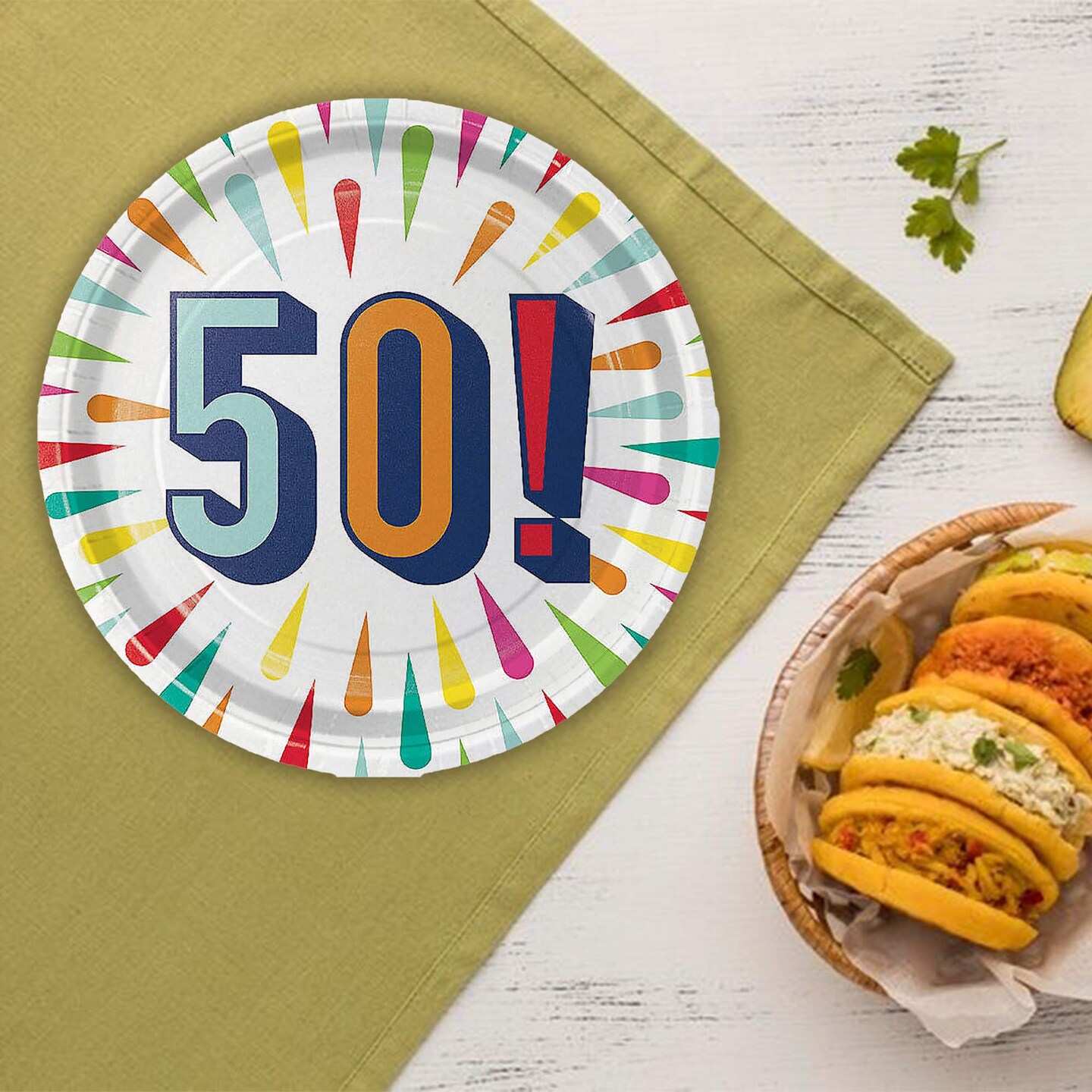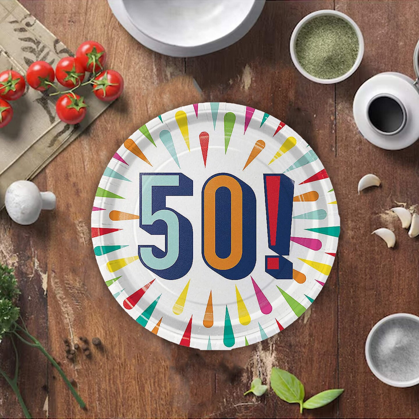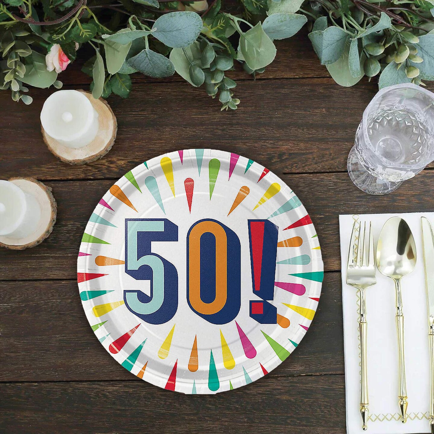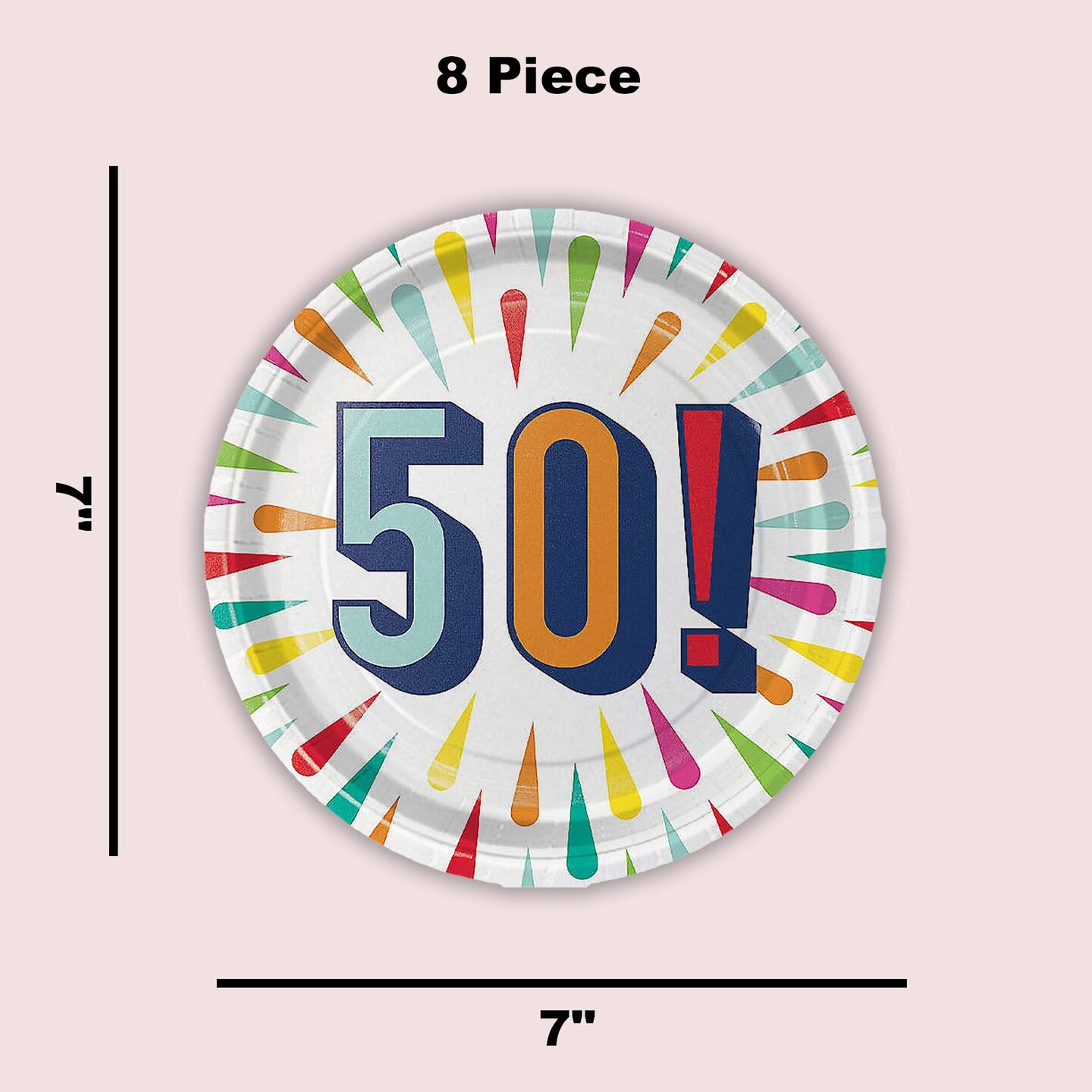 50th Birthday Burst Paper Dessert Plates 8 Count Colorful Milestone Party Supplies 7"