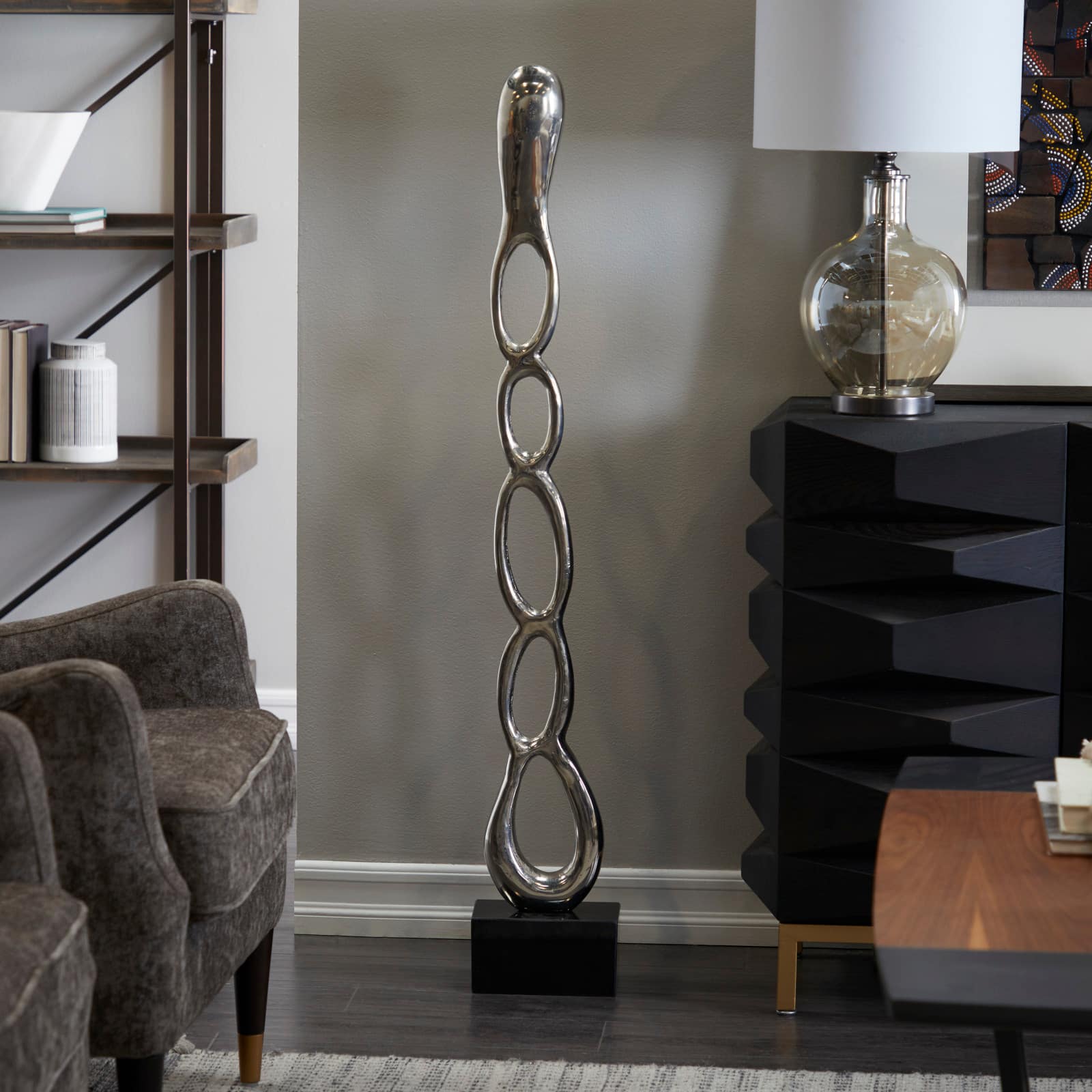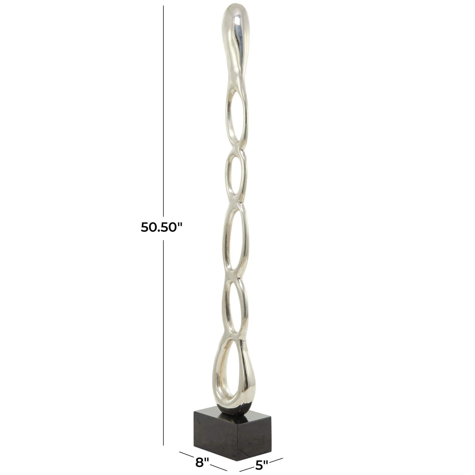 51" Aluminum Tall Linked Floor Abstract Sculpture with Black Base