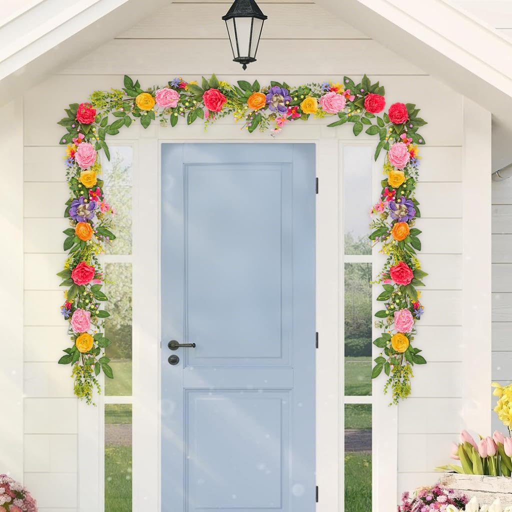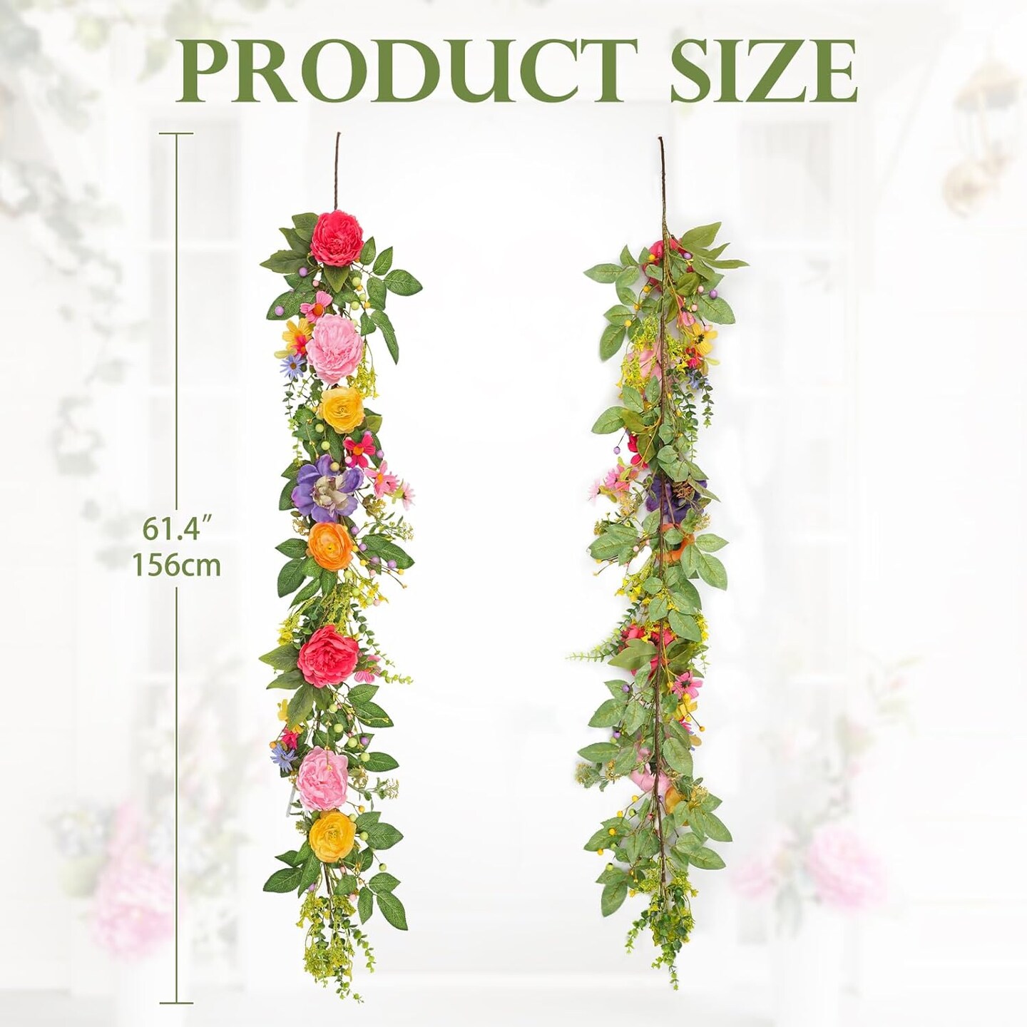 5.17 ft Peony Flower Garland – Spring Floral Faux Greenery for Mantel, Door, Wedding Centerpieces & Table Decorations
