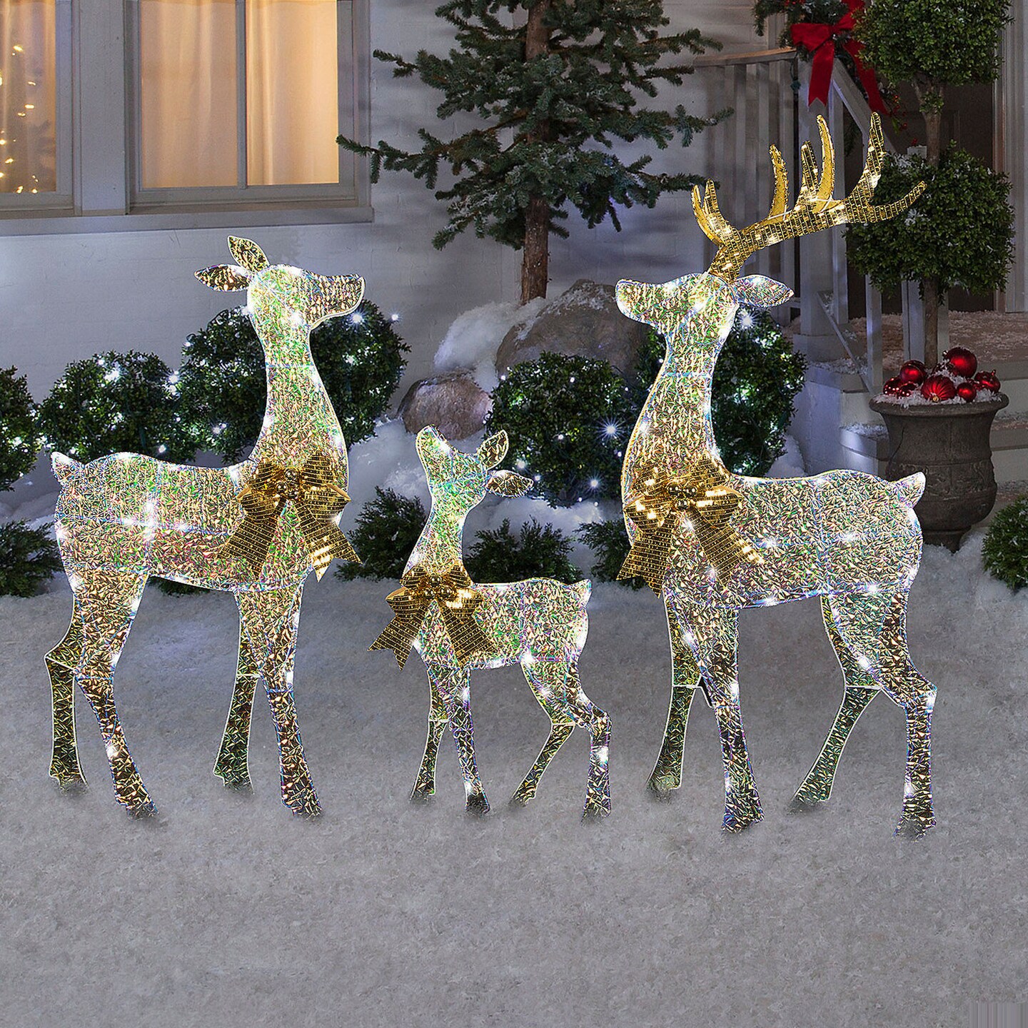 51Inch LED Acrylic Reindeer Family Sculpture Christmas Yard Decoration