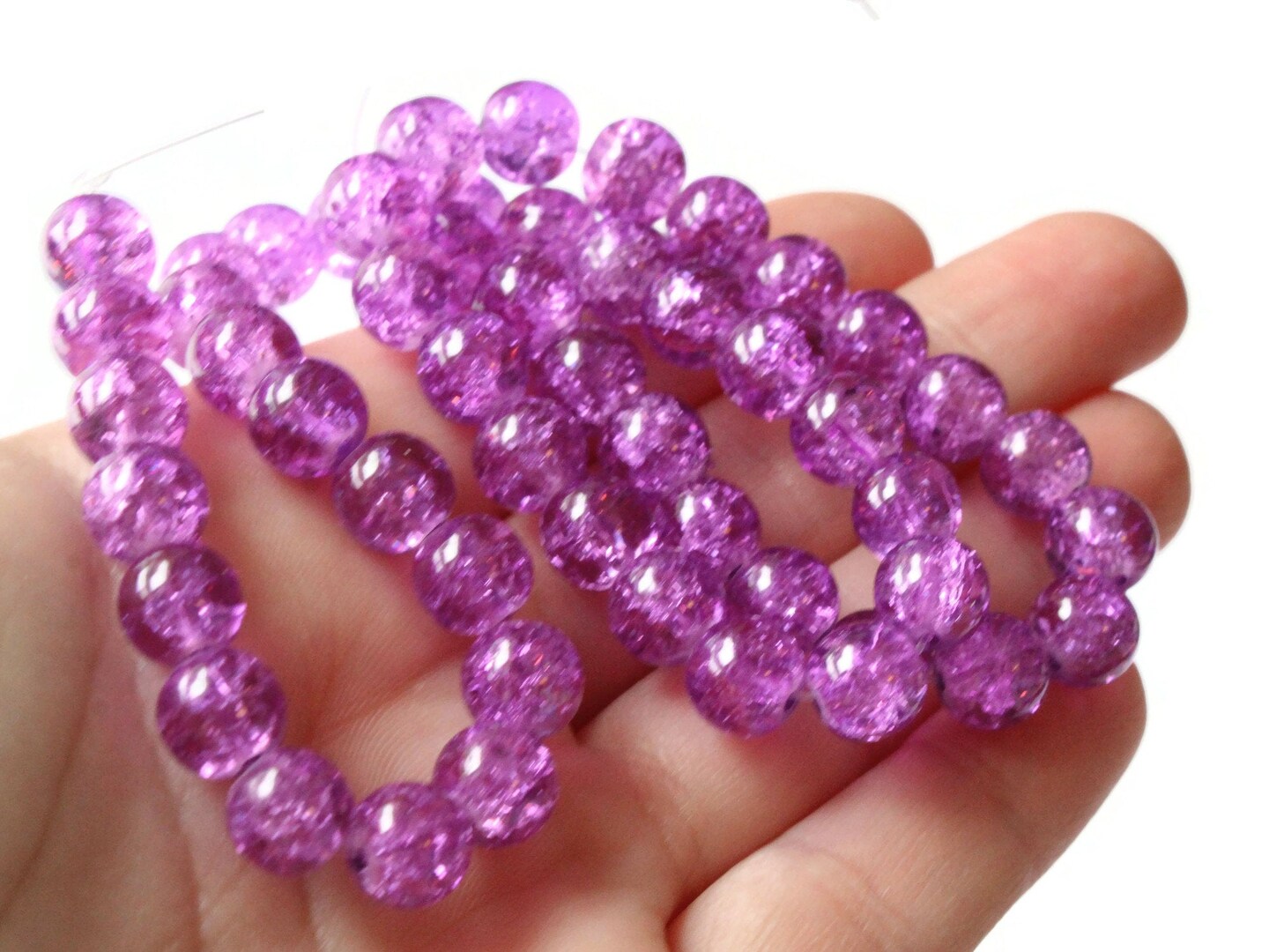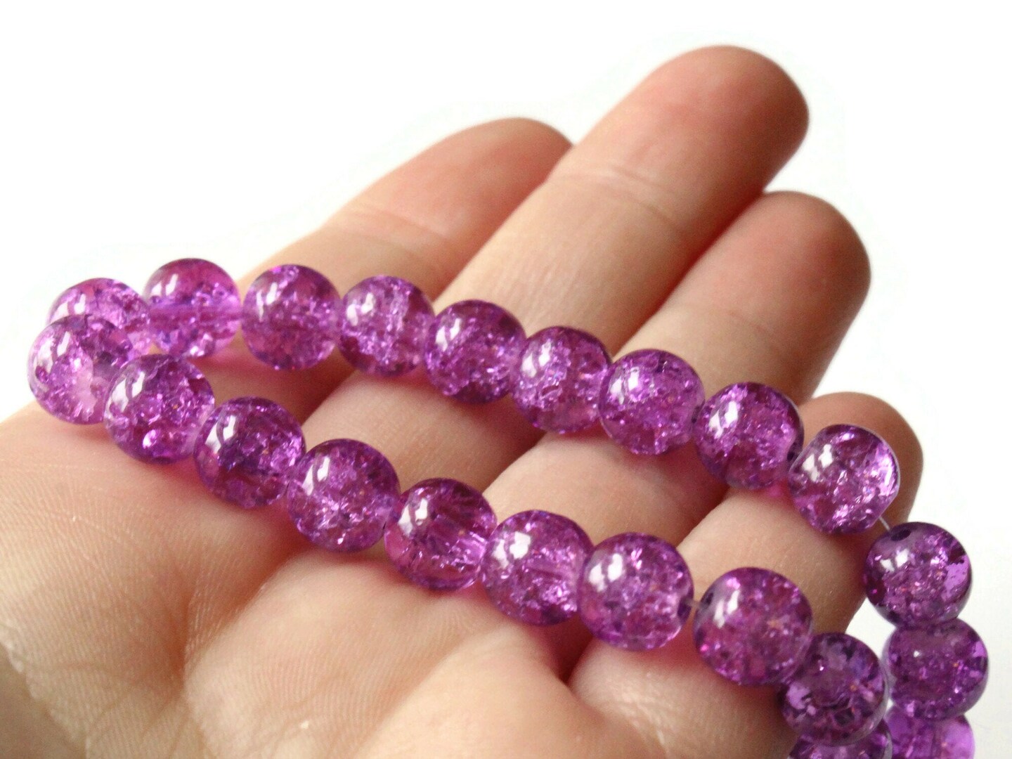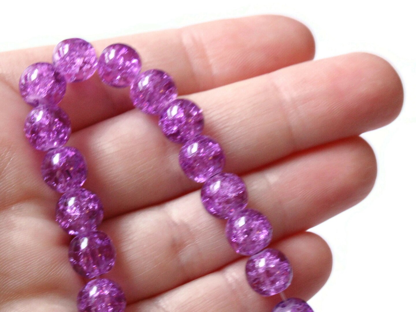 52 8mm Round Purple Crackle Glass Beads