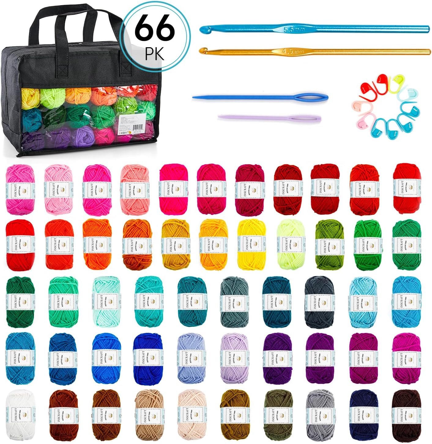52 Acrylic Yarn Skeins Set - 52 Colors, Crochet Hooks, Needles, Stitch Markers, Bag