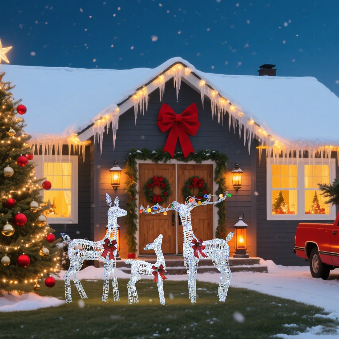 52 Inch 46 Inch 29 Inch PVC Iridescent Striped Braided Set of 3 Reindeer