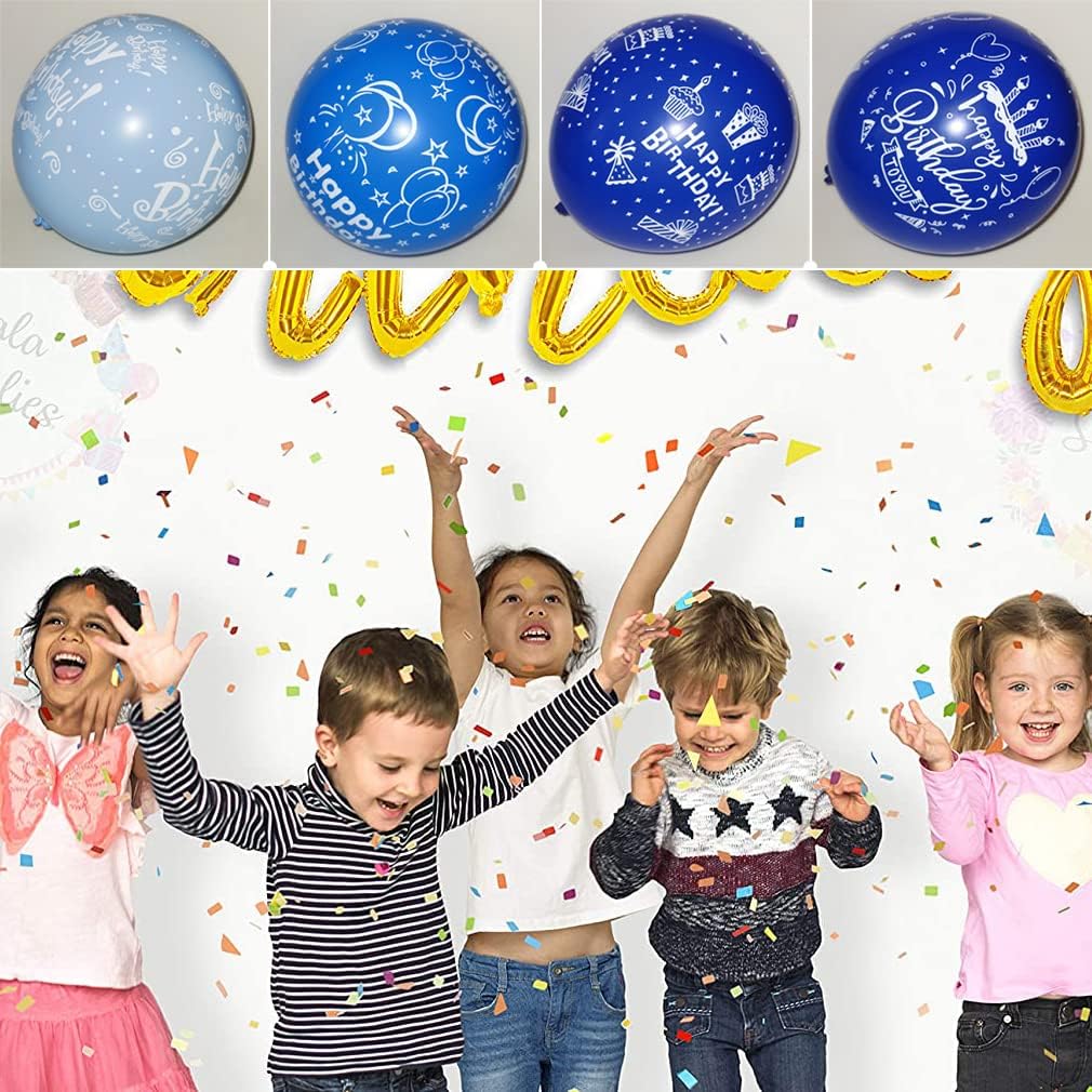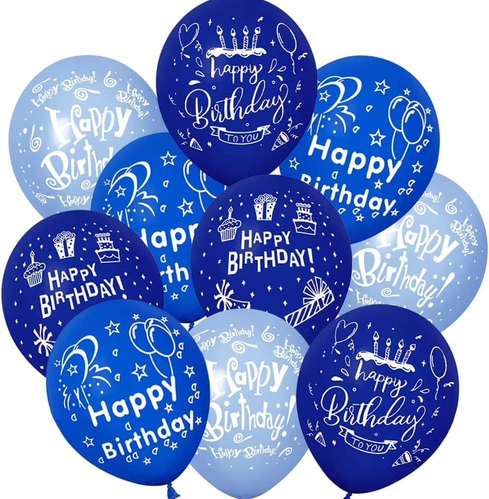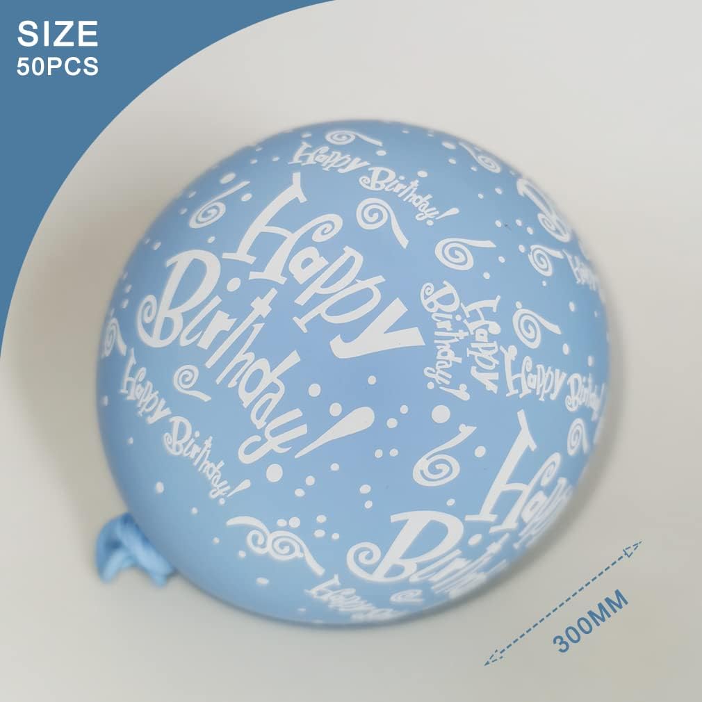 52 Pcs Blue Birthday Balloons with Birthday Party Pattern